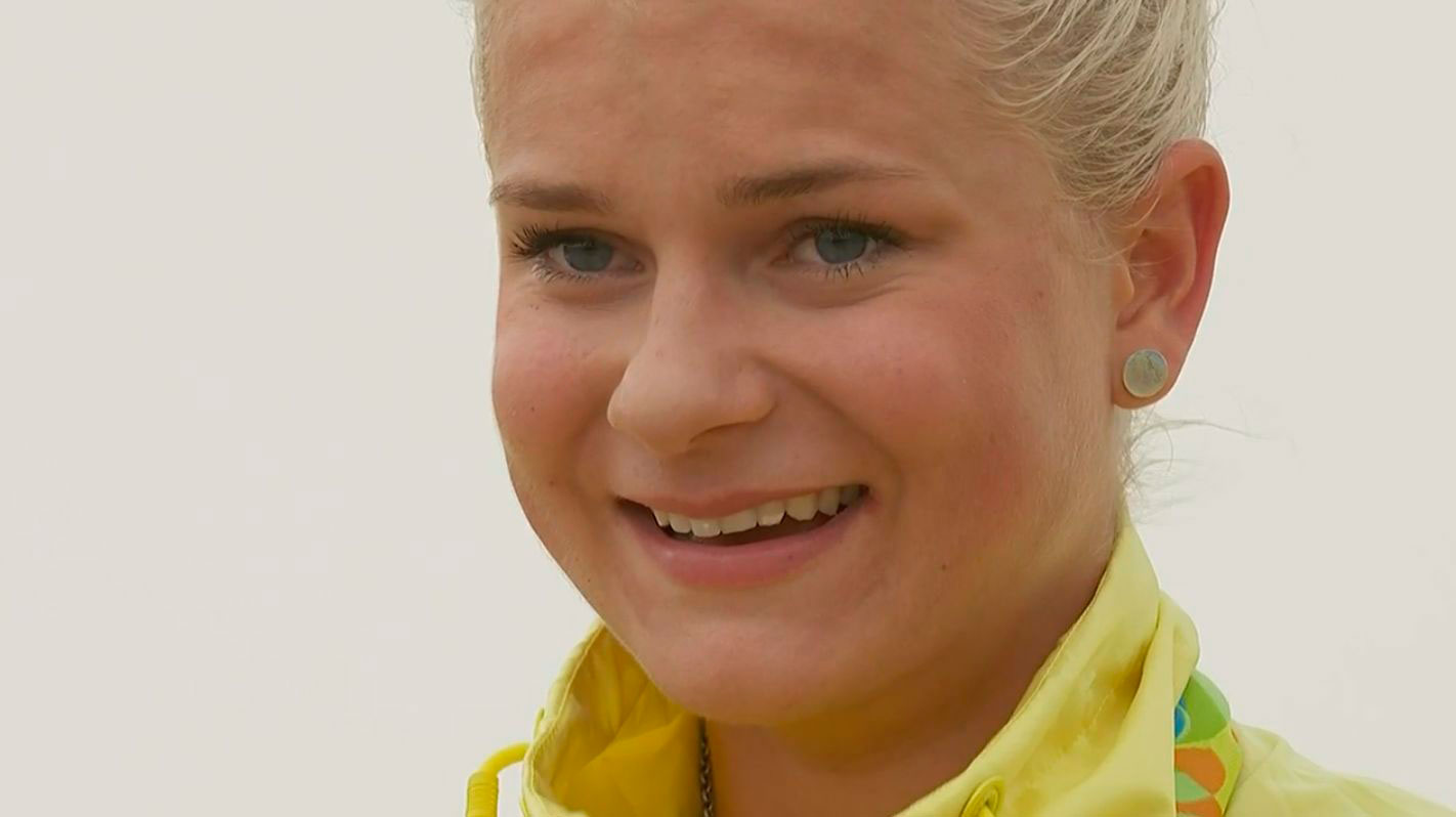 Jenny Rissveds en el podio recibiendo la medalla de oro
