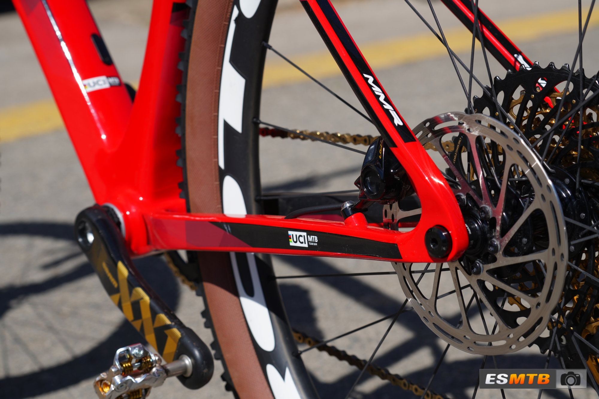 El rojo corporativo de MMR, este año acompañado del azul de la nueva RockShox SID Ultimate. Gustará más o menos, pero nadie puede negar que no llama la atención
