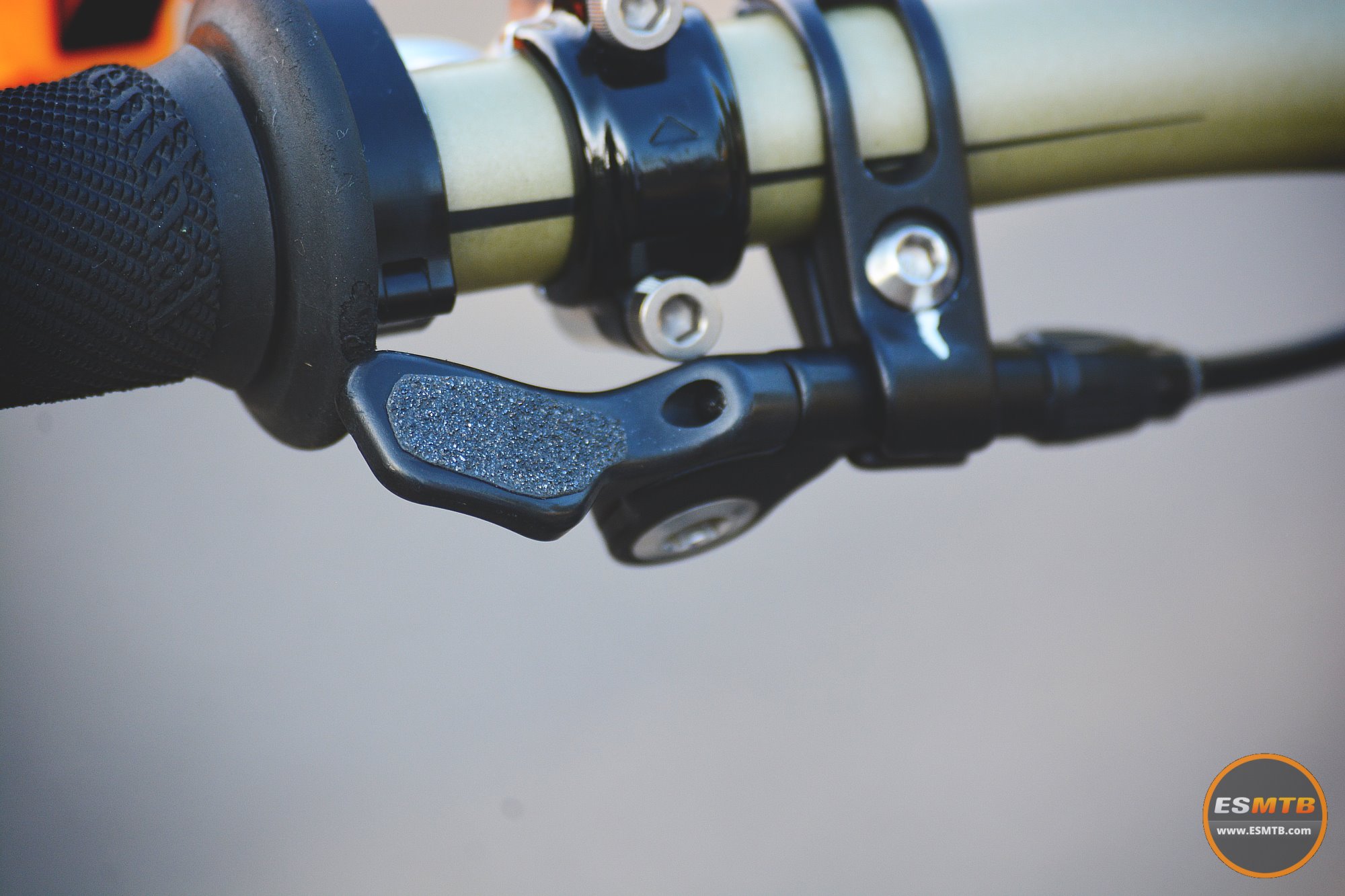 El mando de la tija telescópica de KS, con un poco de tunning en forma de papel de lija para mejorar el agarre