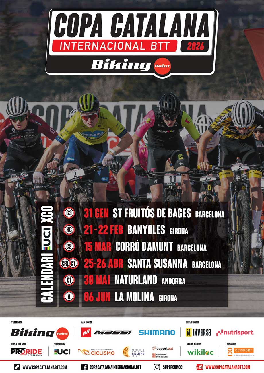 Biking Point repetirá como patrocinador principal del campeonato, que vuelve a situar a Cataluña como un eje fundamental del XCO internacional. Además, varias pruebas serán también parte de la Shimano Super Cup Massi, lo que garantiza parrillas de primer nivel mundial.