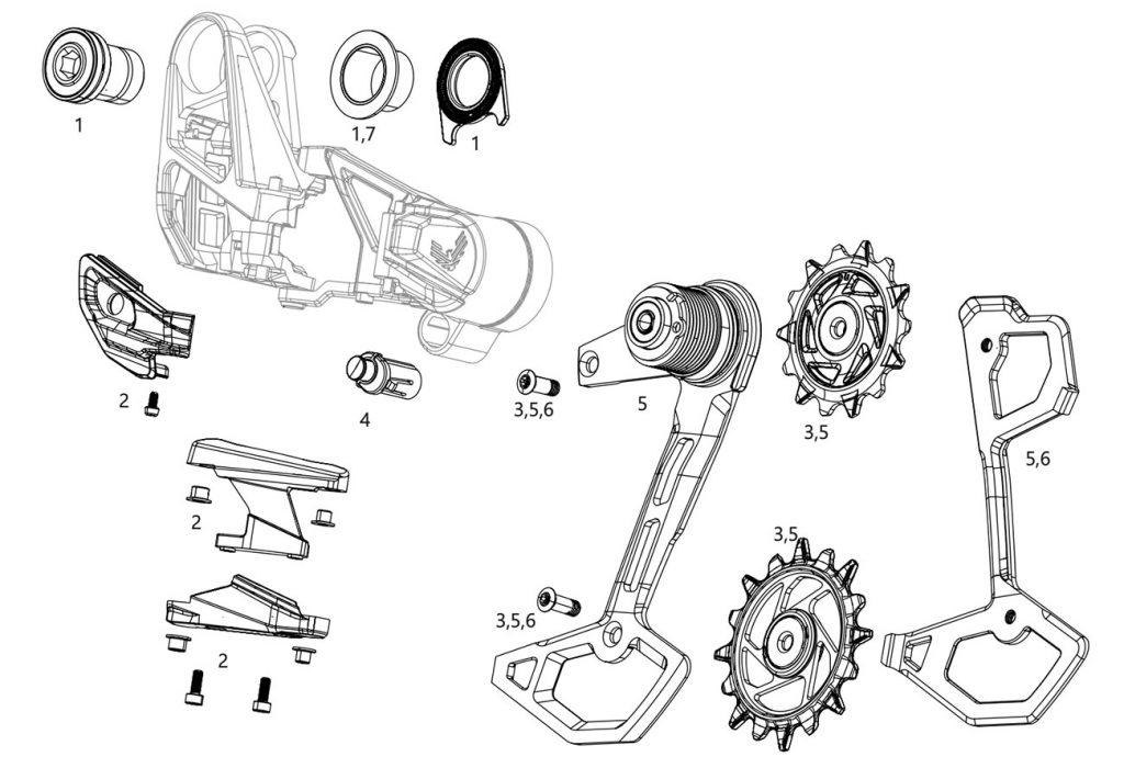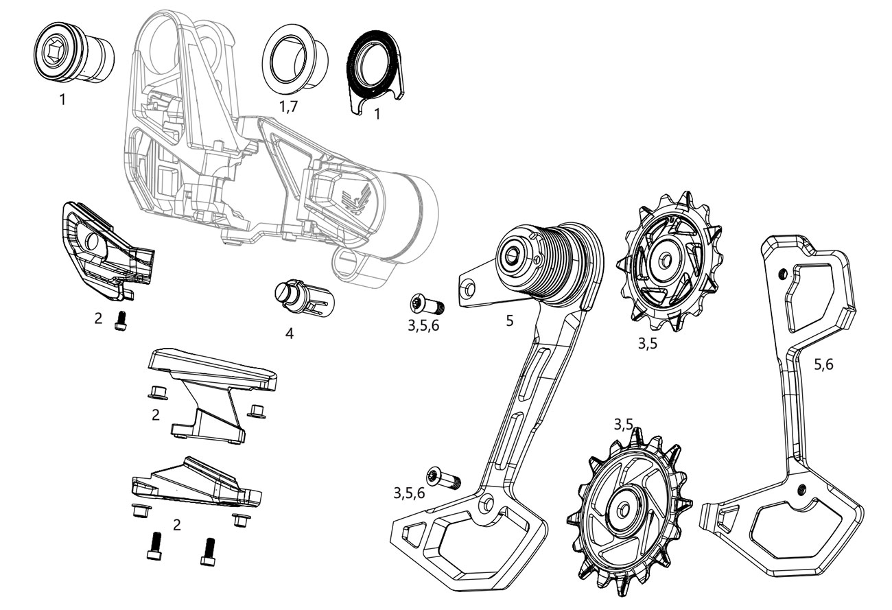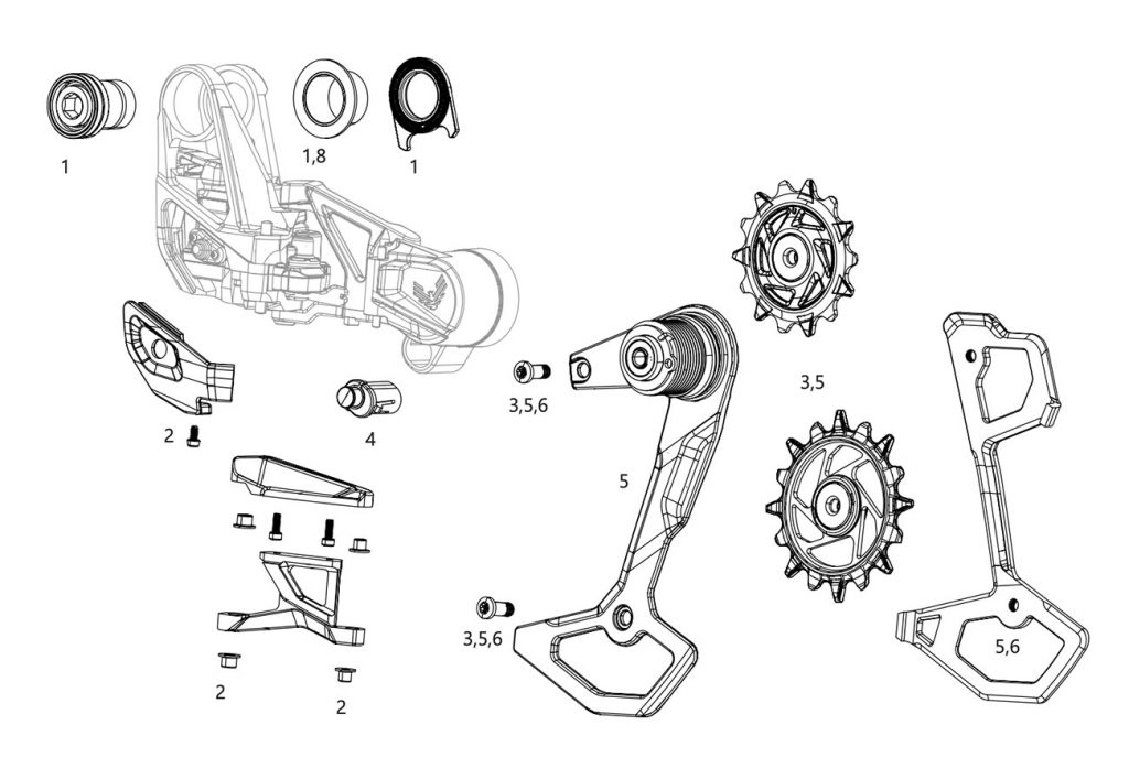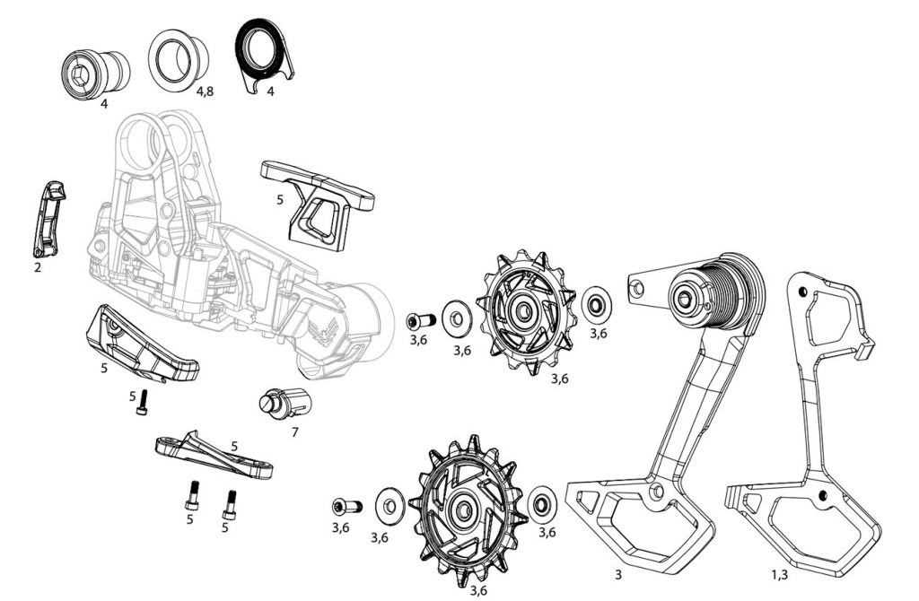 5 11.7518.104.010 REAR DERAILLEUR CAGE ASSEMBLY KIT XXSL T-TYPE EAGLE AXS (FULL REPLACEMENT CAGE ASSEMBLY INCLUDING OUTER AND INNER CAGES, DAMPER AND PULLEYS)