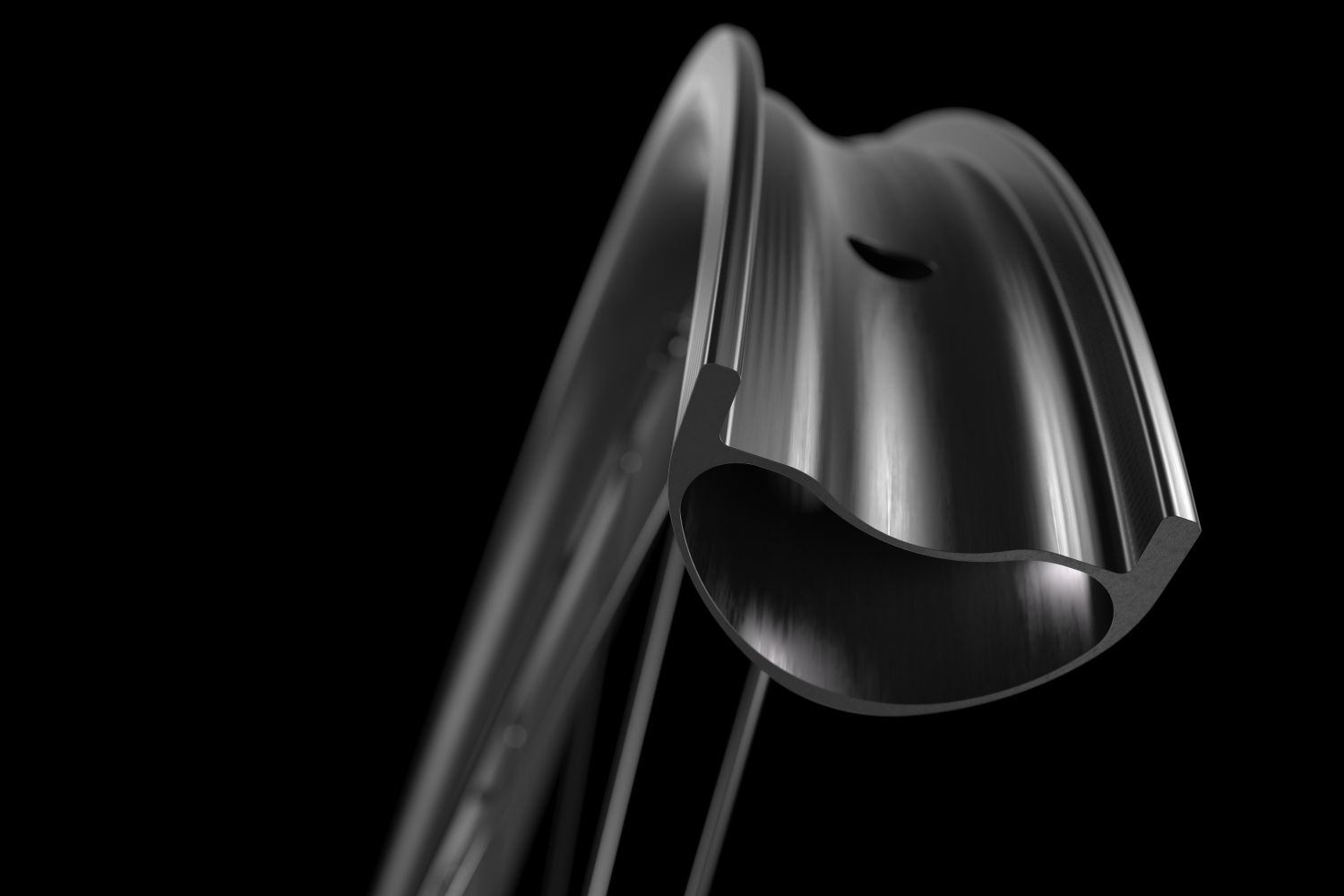 Llanta de carbono de 30 mm de ancho interno y radios conificados para reducir al máximo el peso
