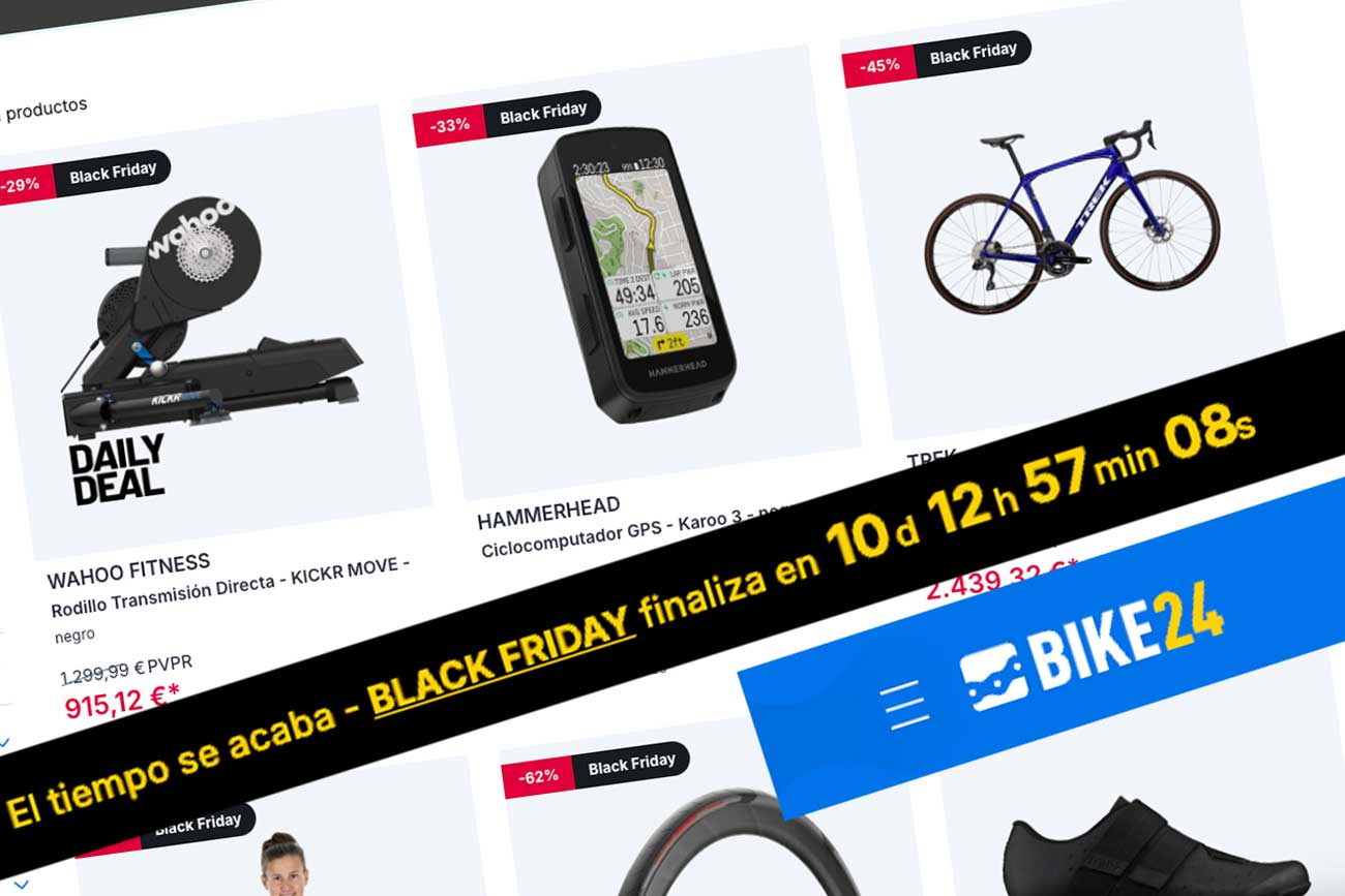 En las ofertas del Black Friday de BIKE24 hay de todo, pero algunas de ellas son especialmente buenas. ¿Cubiertas Pirelli de carretera por menos de 30€? Las tienen. Grupos Campagnolo con un 72% de descuento o el GPS Hammerhead Karoo por poco más de 300€ son otras de las ofertas que será difícil volver a ver.