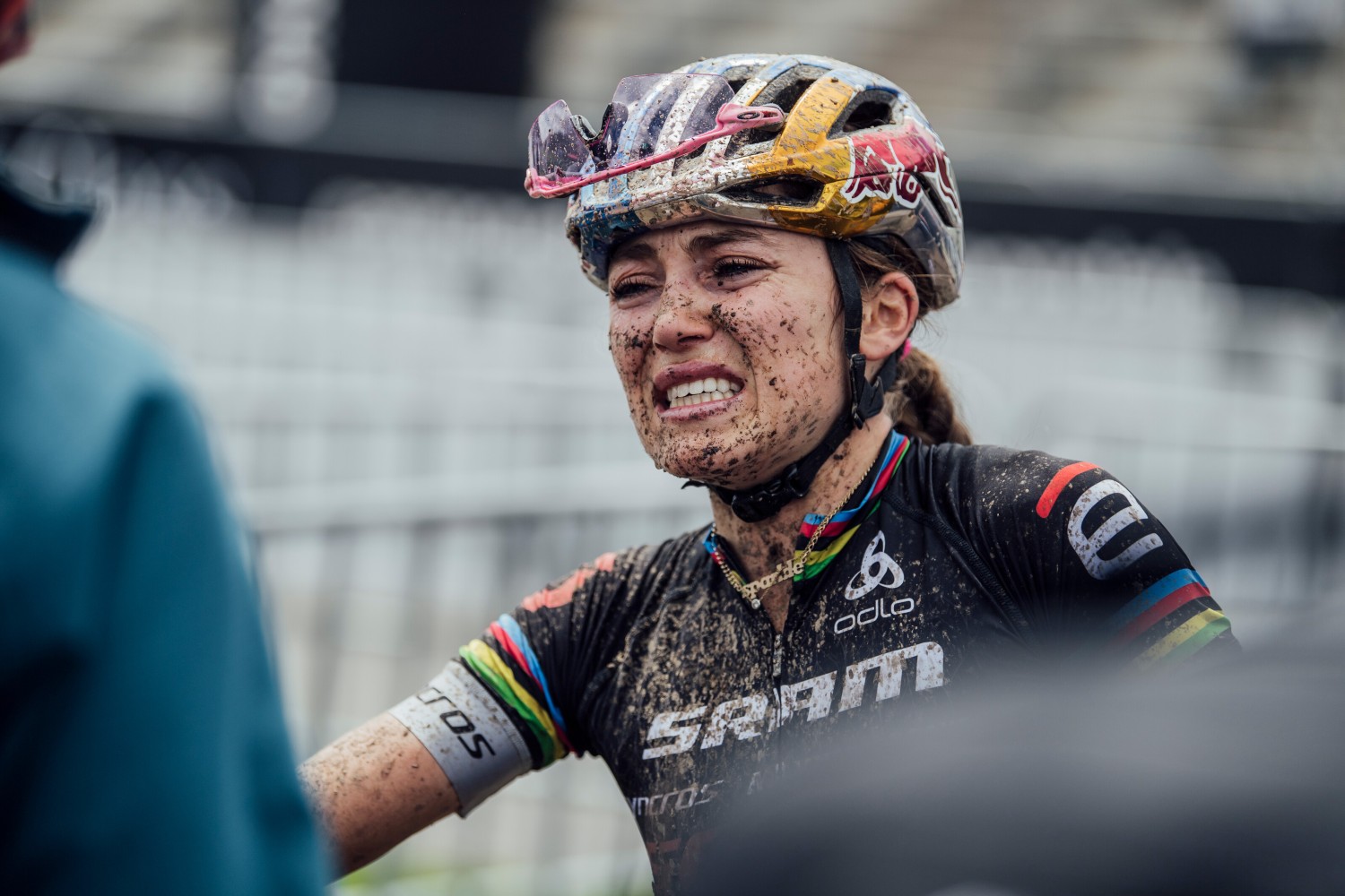 La corredora del Scott-SRAM tuvo que pasar por box en dos ocasiones en una carrera que parecía que podía dársele bien. En primer momento por un freno roto a causa de una caída y después por un pinchazo en la rueda trasera que dejó claro que llevaba instalada una mousse interna. Gracias a ella puedo rodar de forma menos costosa hasta box. Eso sí, con estos contratiempos es imposible pelear por el podio y solo fue 41ª.