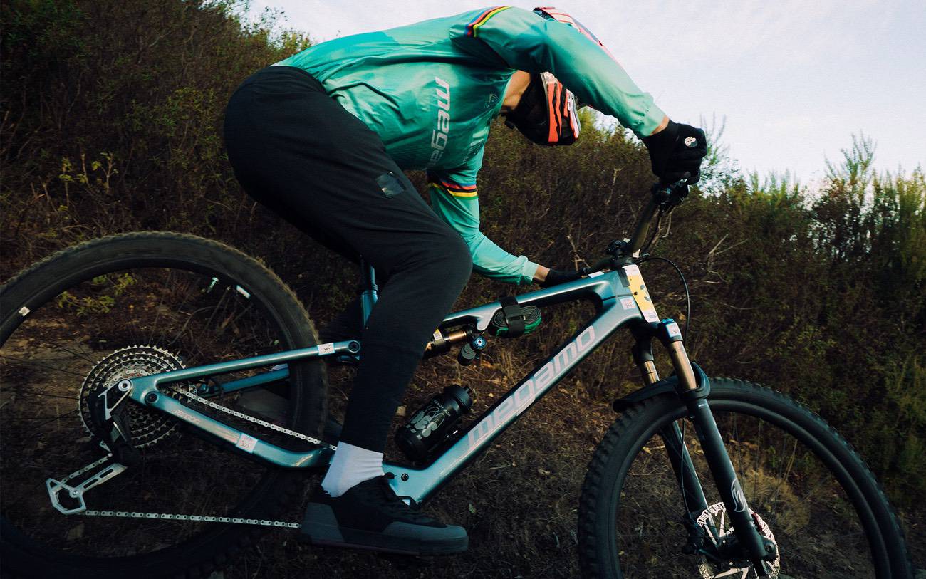La prueba se concentró en una sola jornada debido al mal tiempo, con nueve especiales divididas en dos bucles. Kevin pudo recargar la batería entre bucles, pero no cambió de batería durante la carrera. Aunque el cambio había sido probado previamente por su mecánico, detectaron que el diseño actual del cable de conexión entre batería y motor no está pensado para extracciones frecuentes, lo que les llevó a descartarlo durante la prueba. Es justo esa integración de la batería lo que permite que la Megamo Reason tenga una estética tan lograda y próxima a cualquier MTB convencional. Los 800 Wh de la batería que equipa de serie la Reason fueron suficiente para cubrir toda la competición.