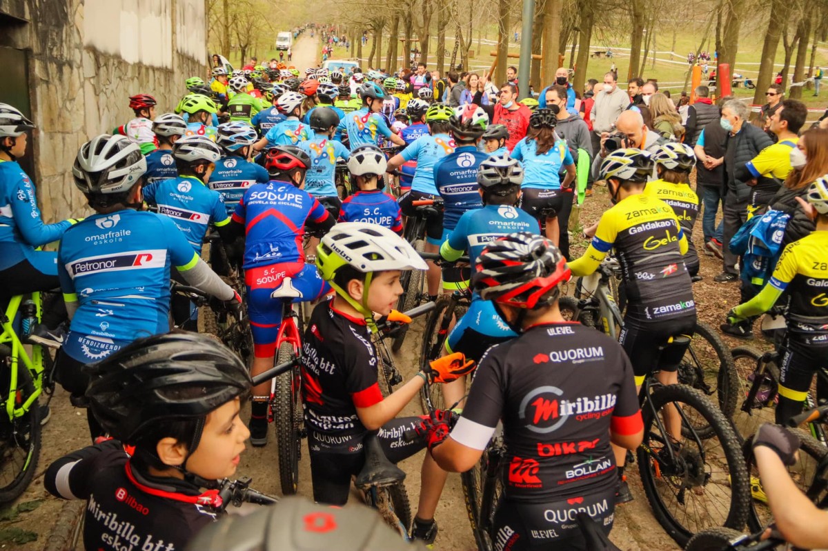 A partir de la carrera de este fin de semana las GREEN SERIES XCO tienen un hermano, pero no nos atrevemos a decir si es pequeño o grande. Las MINI GREEN SERIES para escuelas se estrenaron el sábado con más de 300 niñ@s de 7 a 14 años recorriendo los senderos de los circuitos del Monte Avril de Bilbao. L@s peques, y sus familias, pudieron vivir de cerca cómo es el montaje de una carrera de GS, aunque, eso sí, con recorridos adaptados a cada rango de edad, sin que renunciasen a disfrutar de trazados de cierto nivel técnico.
