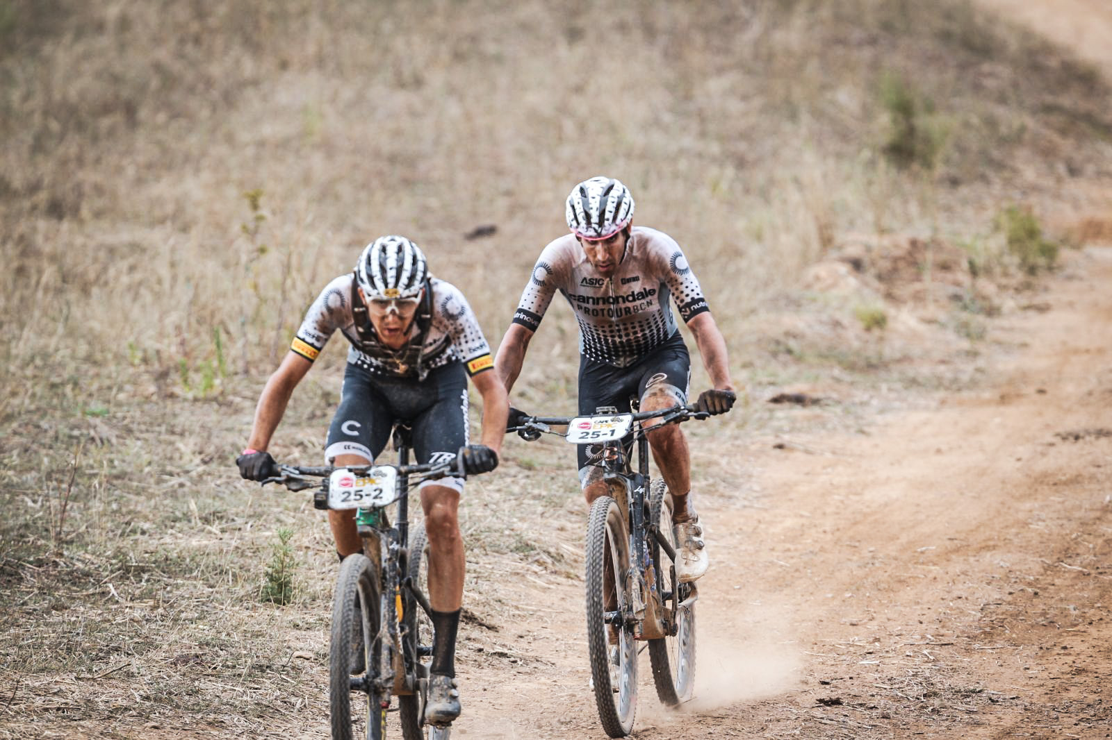 Georg Egger y Lukas Baum al ataque desde el inicio. Impresionante su actitud, agresiva e incoformista como pocas veces se ha visto en la Absa Cape Epic