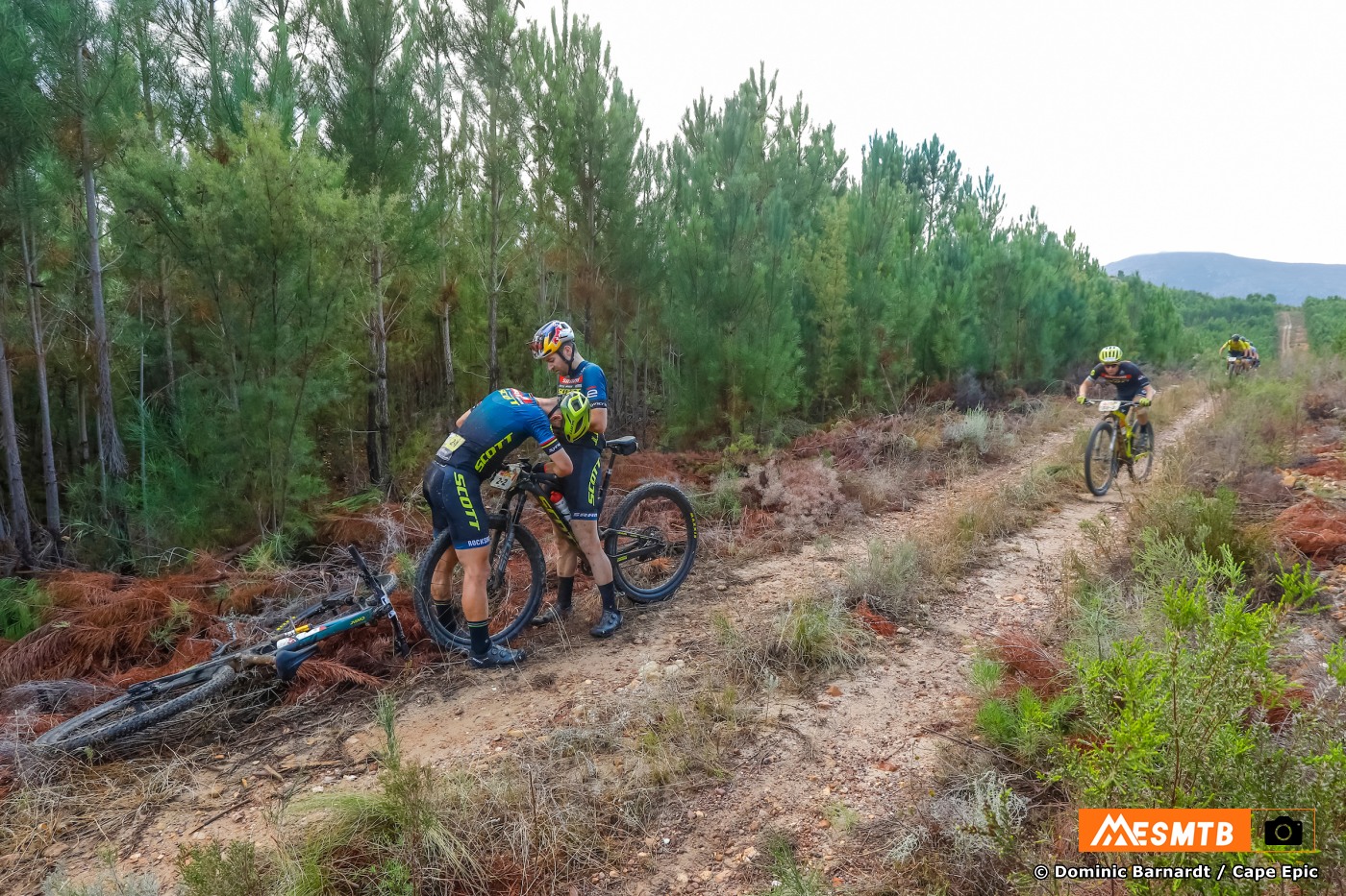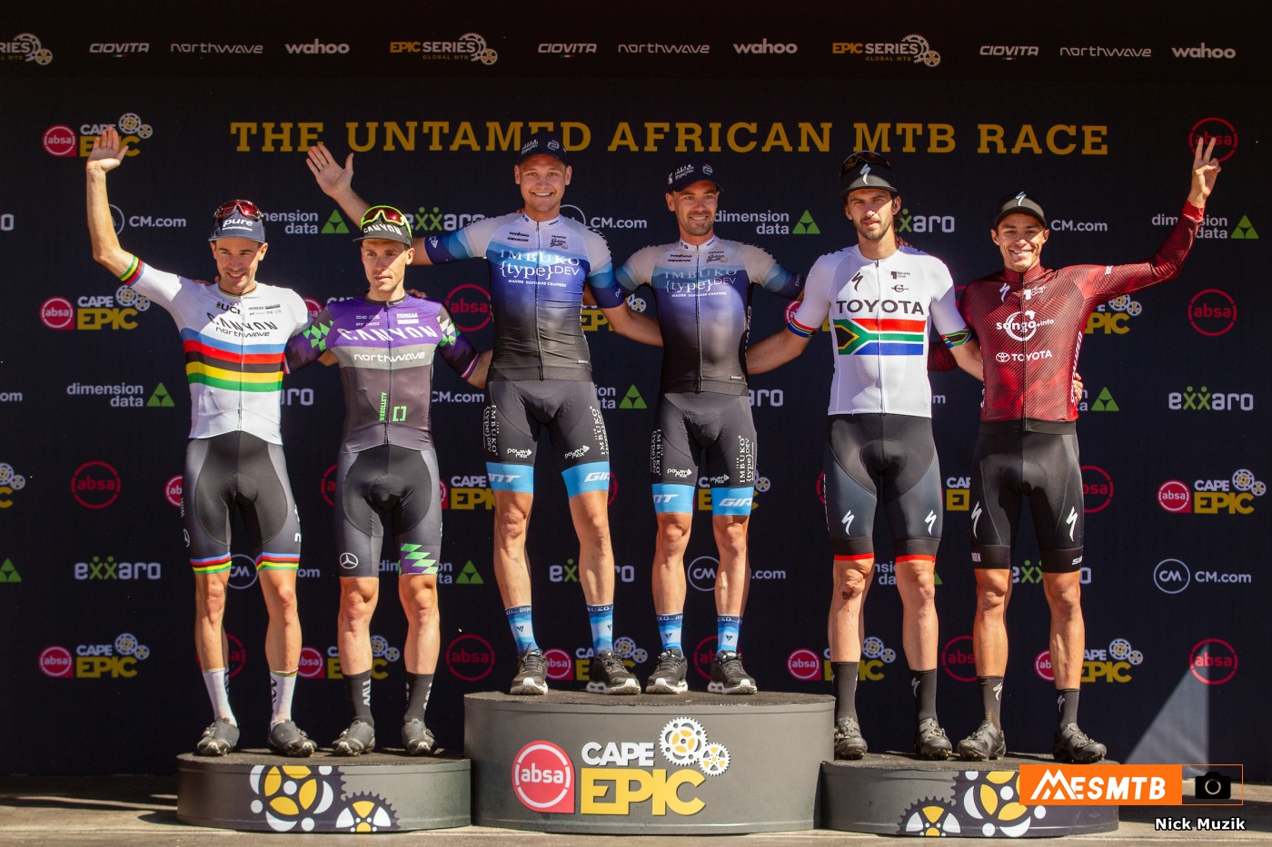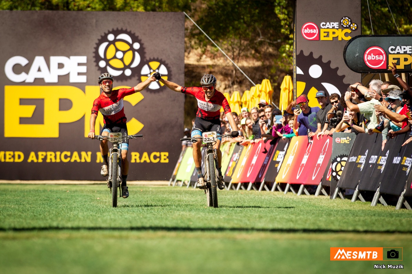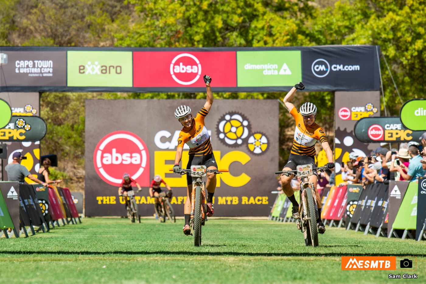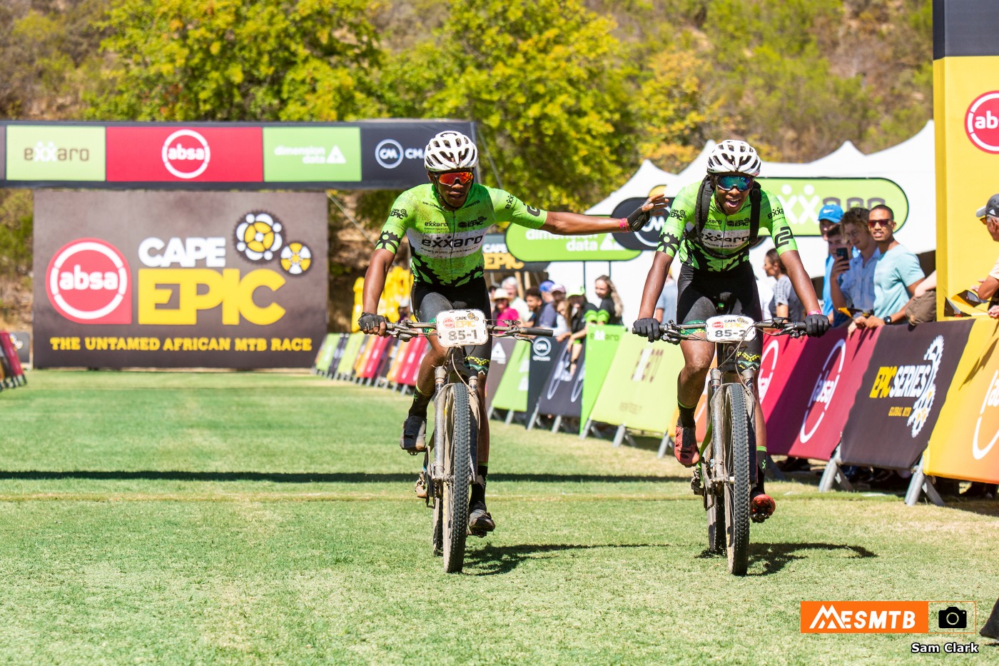 Marco Joubert y Pieter DuToit ganadores del día. Su forma de competir en esta edición se adapta a la perfección a lo que es la Absa Cape Epic. Han ido de menos a más a medida que avanzaba la prueba. Si las primeras etapas son excepcionalmente difíciles de ganar, las últimas, aún siendo complicadas, son más factibles si has conseguido conservar las fuerzas al máximo. Entran en juego más factores tácticos y hay menos competencia en el grupo delantero que en los primeros días.