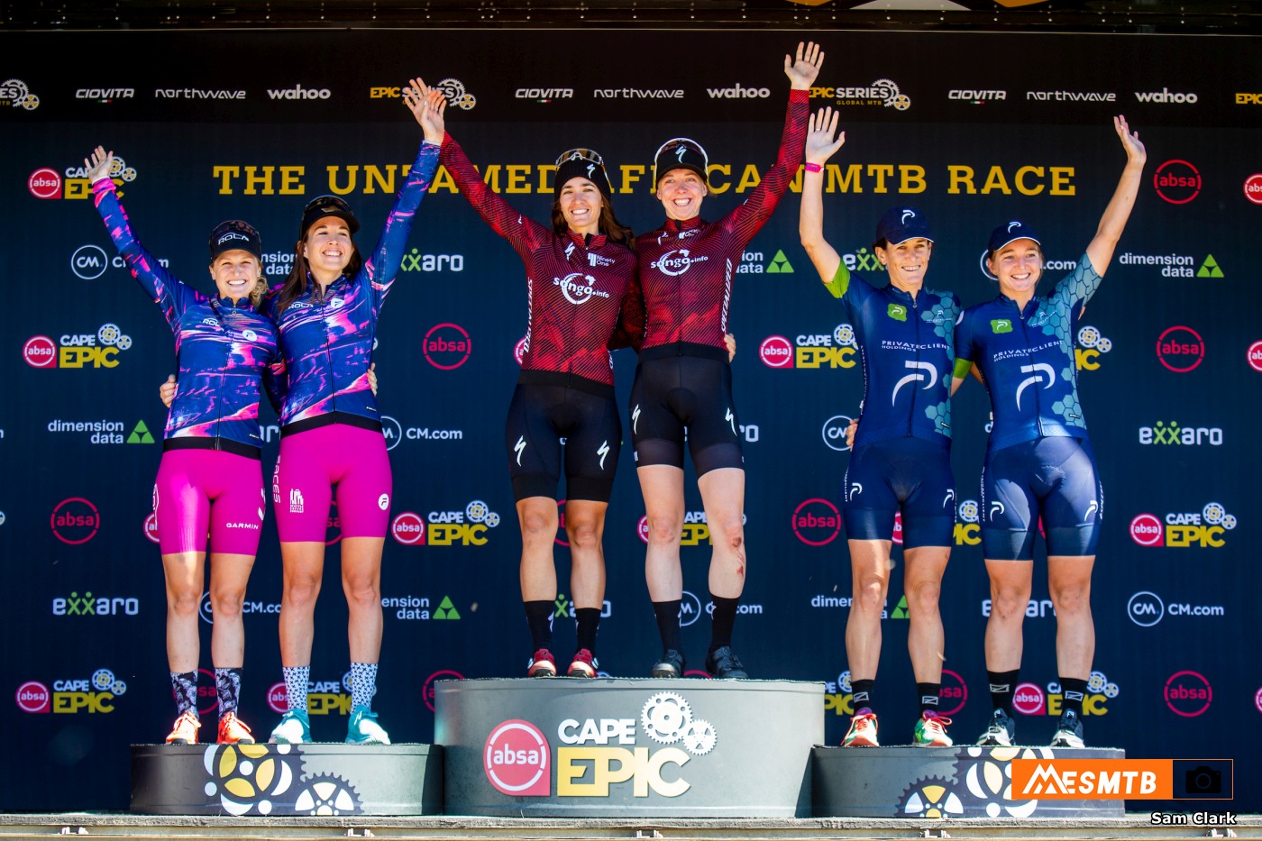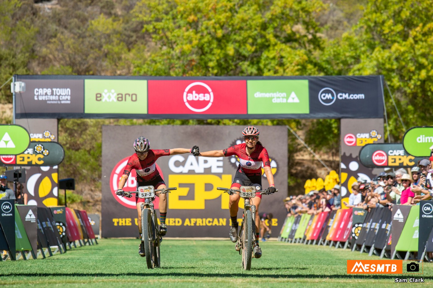 Los dos primeros equipos de la general femenina, separados por más de 15 minutos. Nunca se puede cantar victoria en la Absa Cape Epic, pero parece sentenciada