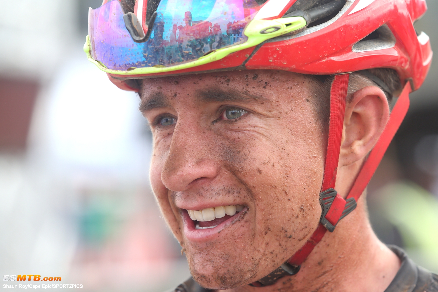 Matthys Beukes del equipo Team PYGA Euro Steel liderando la prueba. La pareja que formaba con Philip Buys tenía opciones de pelear por el podio. Buys no pudo salir por enfermedad y en su lugar ha salido el jovencísimo Julian Jessop, campeón de Sudáfrica de XCO en sub-23. Van a más y según Beukes está encantado con el rendimiento y la inteligencia en carrera que está mostrando su compañero improvisado. Esperan brillar más en las etapas más cortas del final, y pelear por ser el mejor equipo de Sudáfrica.
