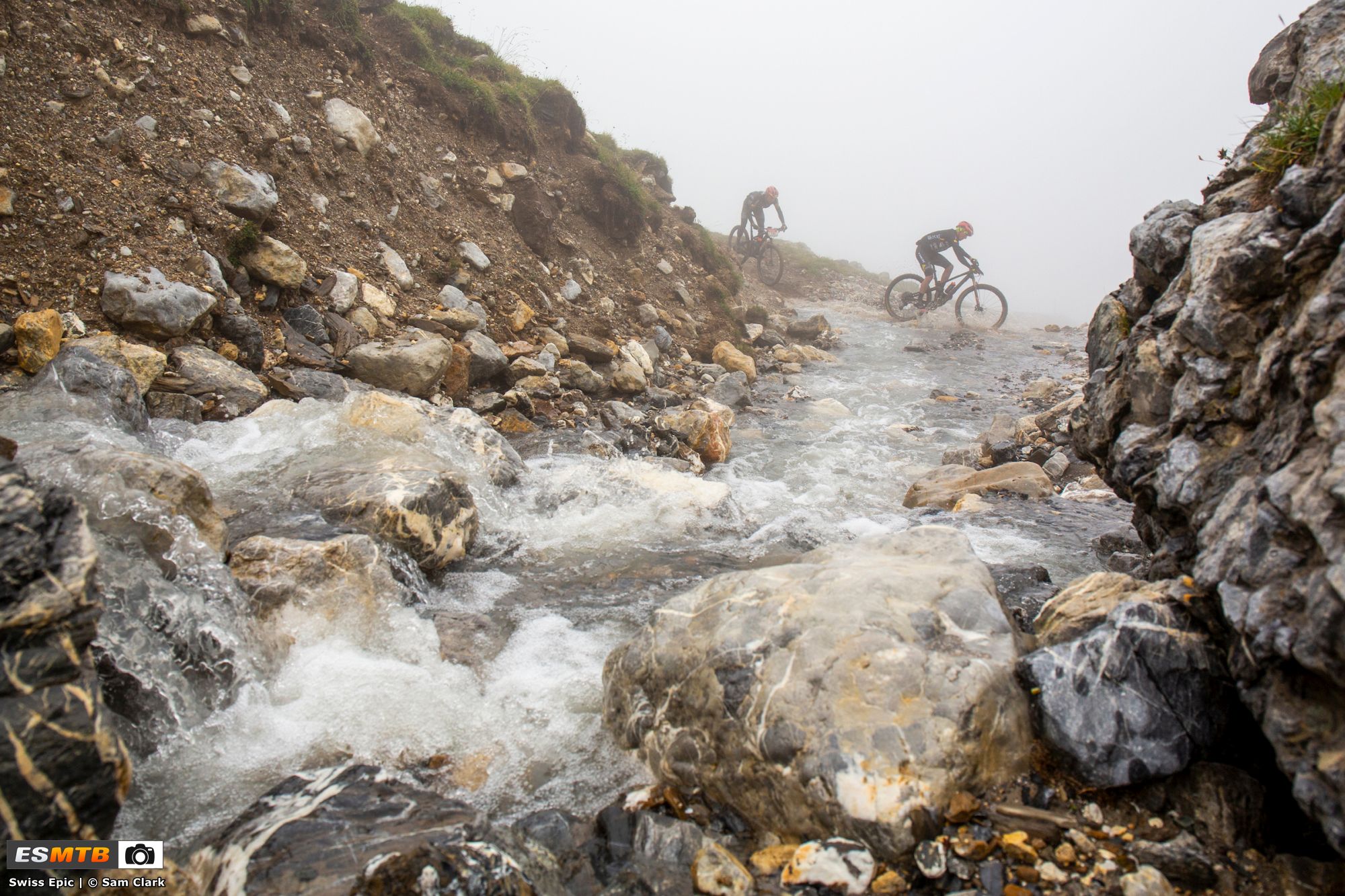 Segundo día de competición en la Swiss Epic con una etapa que volvía a tener todos los ingredientes de una jornada de MTB en esta región de lo Alpes. Frío matinal, terreno húmedo, barro, infinidad de senderos, una subida eterna y bajadas con todas las variantes que puedas imaginar. Bike-park, raíces, curvas, peraltes, saltos… Entre todo ello, el equipo líder de la prueba, el Trek Selle San Marco de Rabensteiner y Casagrande se ha vuelto a llevar el triunfo de etapa. Así ha sido la jornada de hoy.