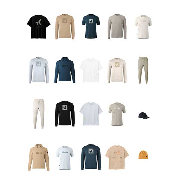 La colección está formada por camisetas, sudaderas, chaquetas, pantalones y accesorios, todos ellos inspirados en la experiencia de Gobik en el mundo del ciclismo, pero reinterpretados bajo un enfoque más urbano y versátil. Destacan las sudaderas Trailblaze, las chaquetas Discovery 2.0, los pantalones Maverick y Commuter, y los nuevos modelos elaborados con tejidos Polartec® Airpeak, símbolo de innovación y confort térmico.