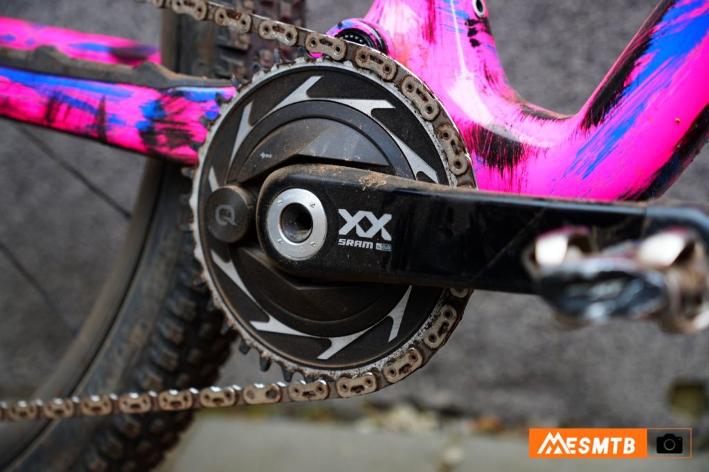En cuanto a las bielas, los grupos XX SL, XX y X0 ofrecen opción con potenciómetro incluido y tienen 2 tipos de potenciómetros diferentes. Los dos son compatibles con las suspensiones Flight Attendant. En el XX SL es el impresionante modelo en el plato de Quarq, que requiere de un plato específico que va roscado al propio potenciómetro y que es el más ligero y preciso de todos. Tiene su tecnología Magic Zero que autocalibra el potenciometro constantemente, así que olvídate de calibrarlo manualmente. En contra, los platos son caros y necesitas una herramienta especial para desmontarlos. En el XX y el X0 encontramos un potenciómetro en el eje de las bielas con lectura de potencia en el lado izquierdo, que ya no tiene la tecnología Magic Zero pero que como ventajas permite usar platos convencionales y su precio es competitivo. El GX y S1000 no tiene versión con potenciómetro.