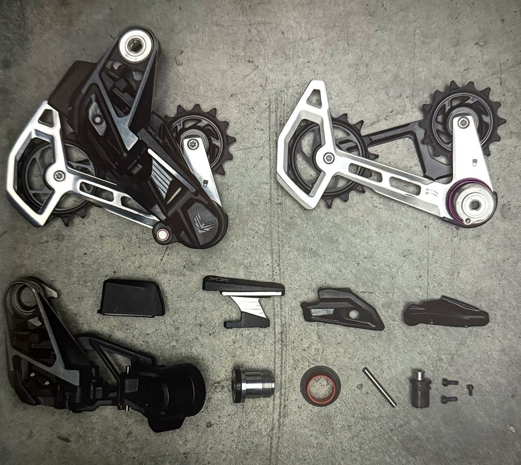 Empezamos por el cambio. Todos usan el sistema de anclaje directo al cuadro que requiere de cuadros con patilla UDH que SRAM denomina Full mount. Todos cuentan con una larga lista de piezas reemplazables y compatibles entre los diferentes cambios, lo que, unido a su robustez, nos hace pensar que estos cambios van a ser más duraderos que ningunos otros en la historia del MTB.