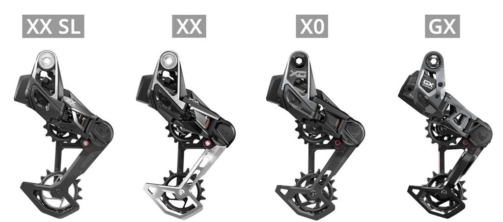 SRAM ha dado un golpe sobre la mesa con su nueva familia de grupos SRAM Eagle Transmission, la segunda generación de sus grupos electrónicos para MTB ha traído consigo una completa revolución liderada por la creación de los primeros cambios con anclaje directo al cuadro. Si queréis saber todos los detalles de estos grupos tenéis un completo vídeo de presentación del XX SL, un vídeo de test tras más de 3.000km de uso y también el test del SRAM GX AXS Eagle Transmission. Aquí os vamos a comparar los detalles de los 4 grupos para mostraros qué diferencias hay entre ellos y también presentaros un quinto grupo que no podéis comprar pero que sí podéis encontrar en bicis de serie.