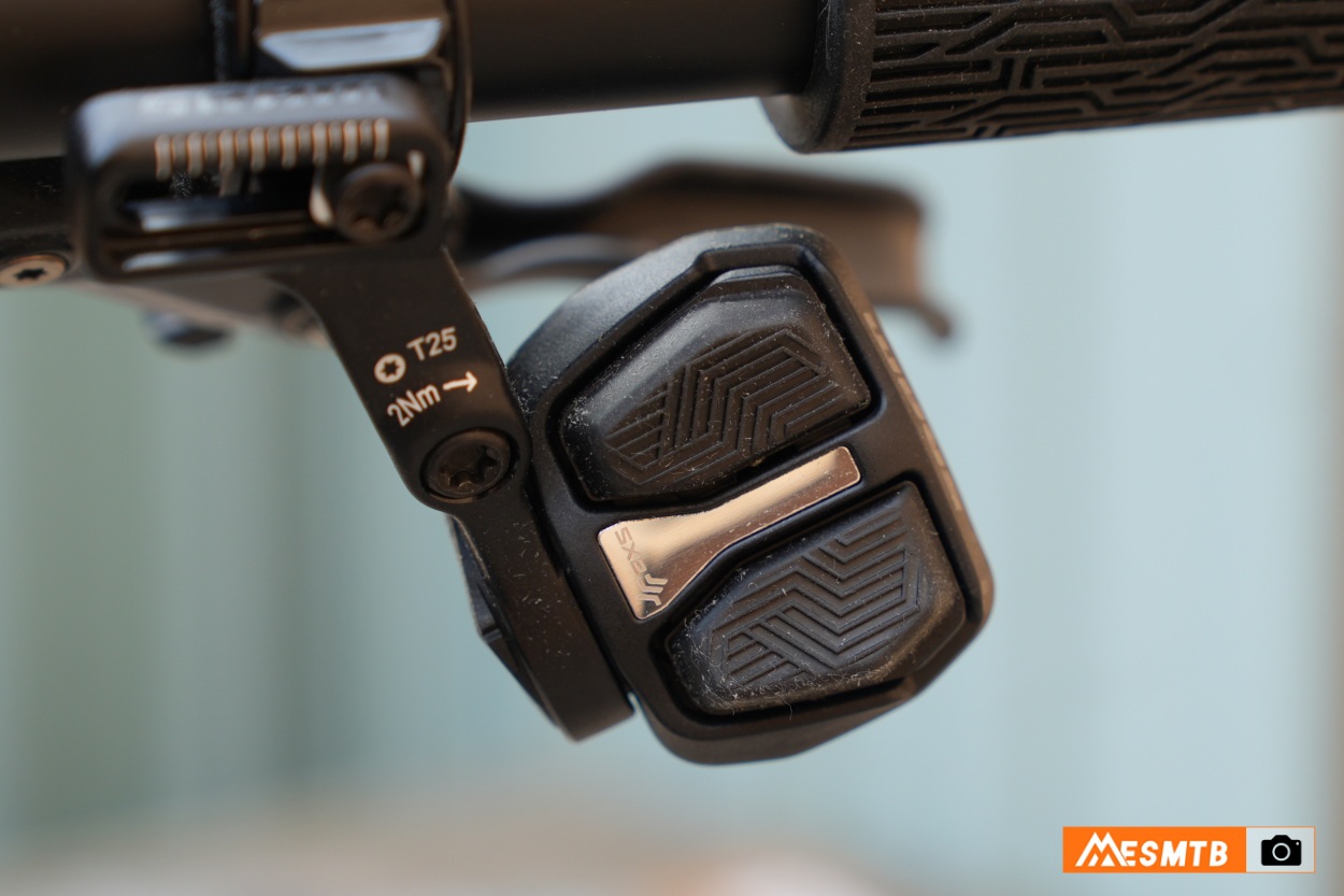 El último componente del grupo son sus manetas. O podríamos decir que su maneta y es el único componente que es compatible con los anteriores grupos AXS de SRAM, una de las ventajas de su ecosistema inalámbrico y electrónico. De la misma forma, si te gusta la anterior maneta más que esta, también la puedes usar con los nuevos grupos. La nueva maneta se llama AXS Pod Controller y tiene un funcionamiento con dos botones separados. Hay 2 versiones, aunque básicamente son idénticas. La versión Ultimate, que es la tope de gama, trae la posibilidad de desmontar los botones e incluye botones cóncavos o convexos. Desde hace un tiempo, si no te gusta el funcionamiento con dos botones, vende una versión Rocker Paddle que cambia los botones por un funcionamiento más similar a palancas y añade una nueva forma de cambiar. Puedes comprar solo el Rocker Paddle y actualizar un AXS Pod controller de botones a ese sistema sin problema.