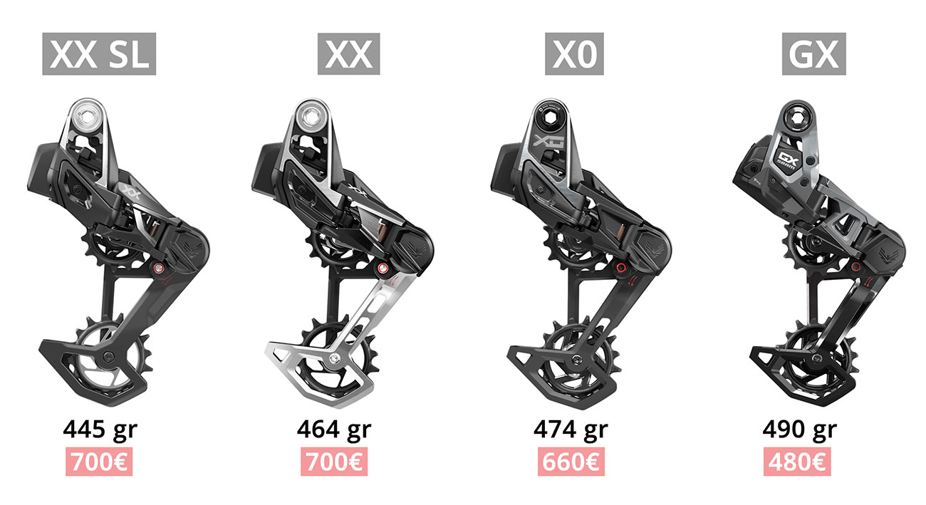 Guía grupos SRAM Eagle Transmission AXS: todo sobre el XX SL, XX, X0, GX y S1000 (peso y precio)