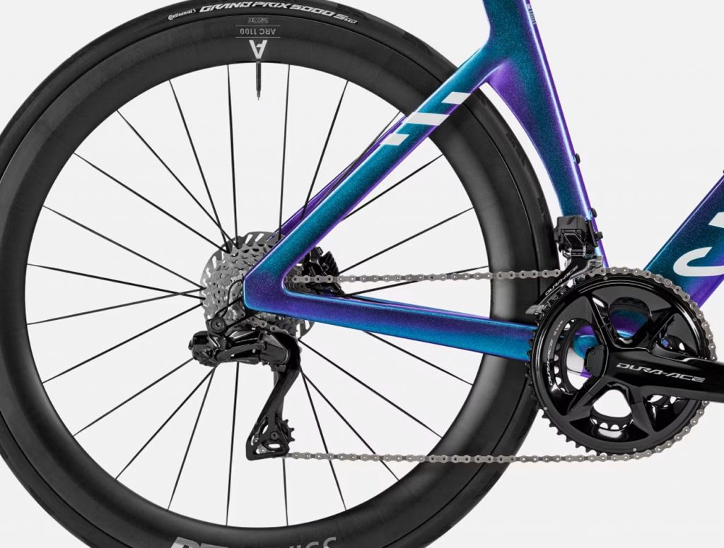 A simple vista, la Canyon Aeroad usada por Mathieu van der Poel es la misma que puedes comprar en la web de Canyon. Pero tiene una pequeña pero importante diferencia. En la parte trasera pasa a usar el sistema de patilla de cambio UDH, algo que no tiene la versión actual. En la práctica no afecta en nada al modelo que se vende actualmente, dado que todos los montajes que ofrece montan cambios que no son de anclaje directo y, por tanto, no requieren patilla UDH. Pero la realidad es que la propia patilla UDH tiene ventajas incluso en esos casos, con una disponibilidad total de recambios en cualquier lugar, siendo la primera patilla de cambio que logra estandarizar los cuadros en este componente que, hasta hace poco, era un auténtico dolor de cabeza.