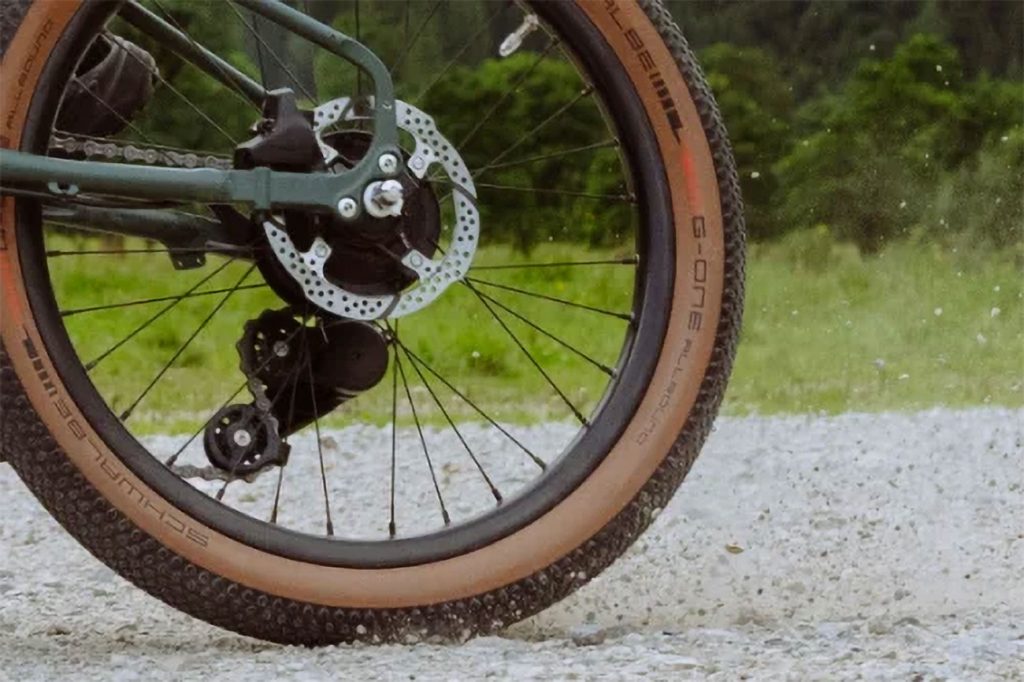 Aunque nunca hablan específicamente de que la Brompton G Line sea una bicicleta de gravel o para usar en terreno gravel, equipa uno de los neumáticos más conocidos en el mundo gravel internacional, el Schwalbe G-One All Round en medida de 54 mm de ancho. También está lista para ser usada en tubeless.