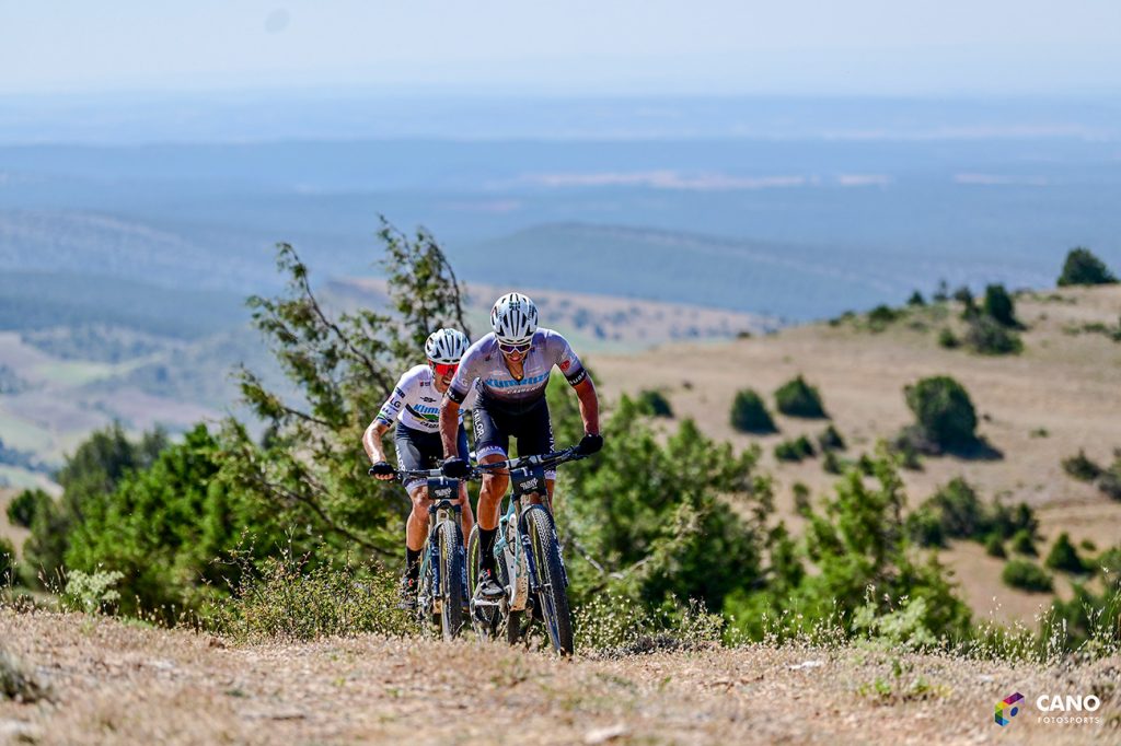 La etapa más larga de esta edición 2024 de Colina Triste empezó a romperse desde la subida inicial. Solo 6 parejas formaban el grupo cabecero al paso por el avituallamiento 1 en la localidad de Mamolar, con todos los equipos aspirantes a la victoria bien posicionados. Los bikers se encontraron senderos divertidos y rápidos entre pinos durante toda la etapa y el alto ritmo impuesto desde la misma salida hizo que ningún equipo más pudiese contactar con este grupo cabeceo. Al paso por el avituallamiento 2 las dos parejas del Klimatiza Toteemi Cabberty marcaban distancias y se iban en busca la victoria, justo en el momento en que se afrontaba la subida más dura de la carrera, el Alto de Cervera.