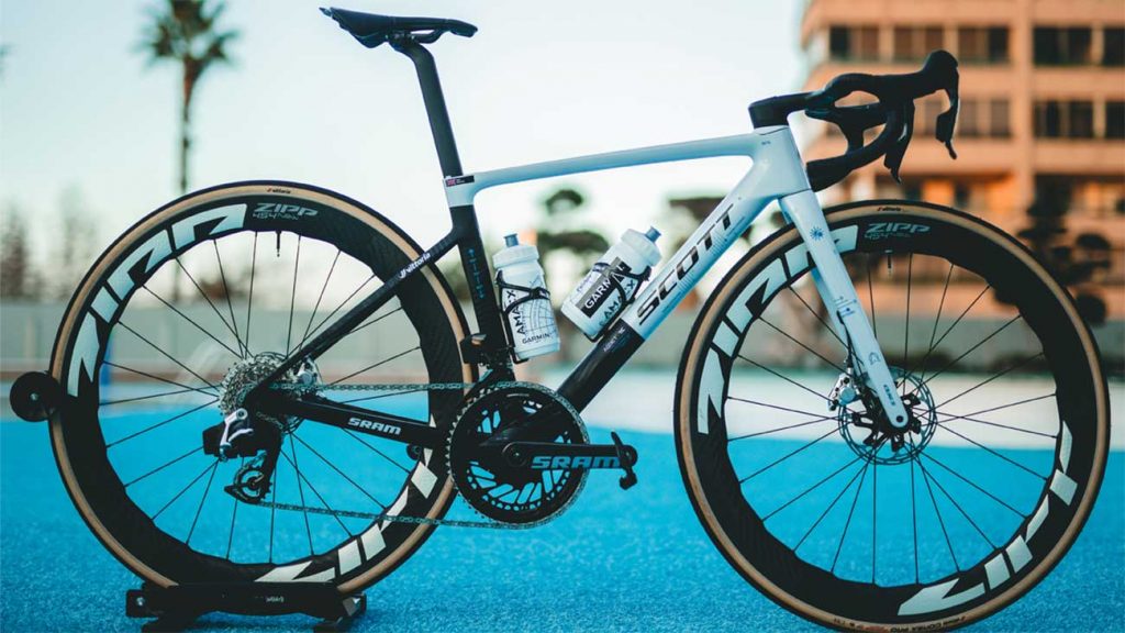 Usada por Pidcock, es 300 gr más ligera que la anterior