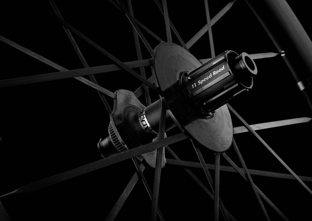 Las ruedas utilizan llantas de carbono hookless de 50 mm de perfil, diseñadas para reducir la resistencia aerodinámica en diferentes ángulos de viento y mantener la estabilidad en condiciones variables.