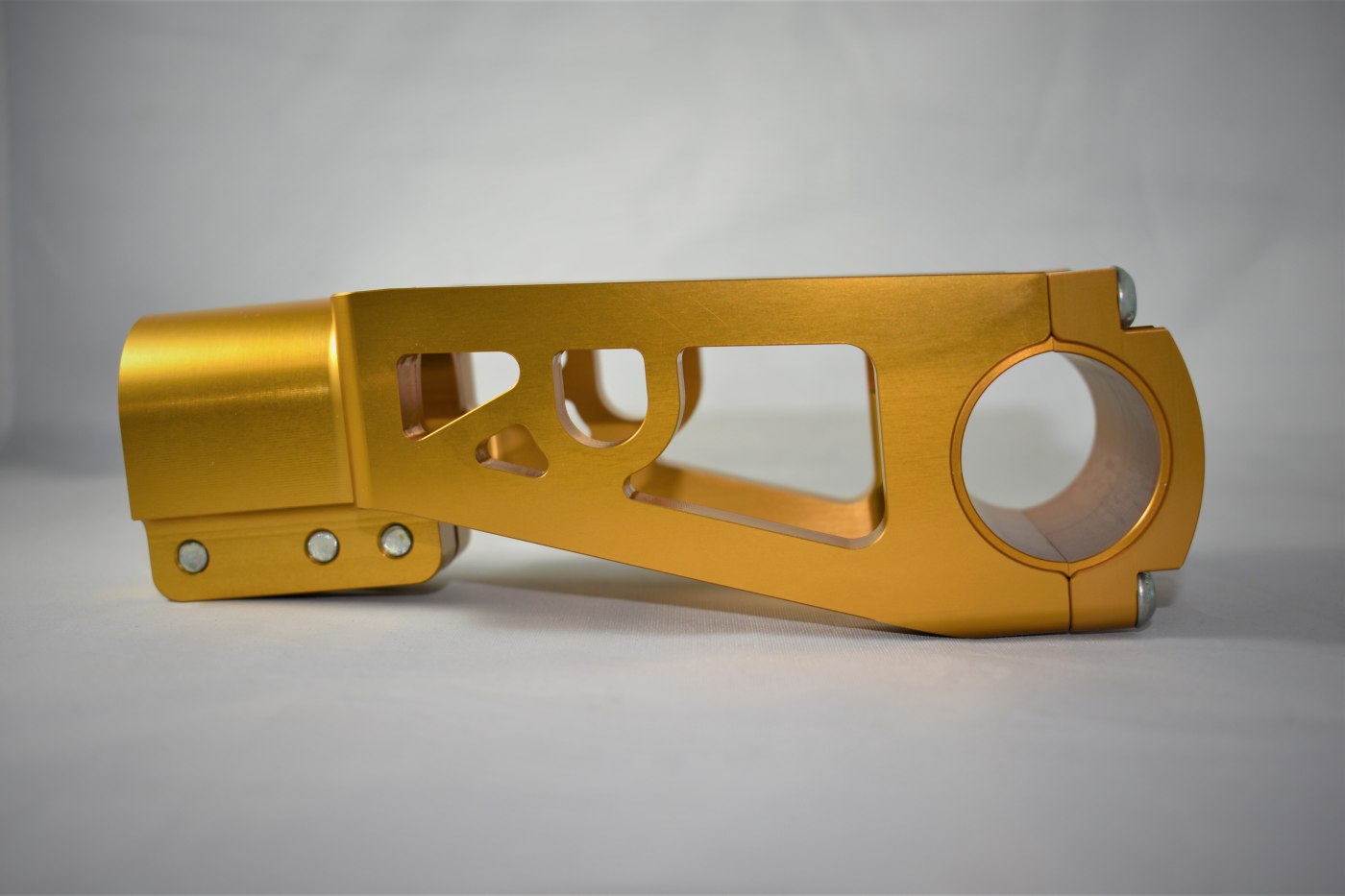 Está realizada en aluminio 7075 T6 y solo se vende en el color dorado que puedes ver en estas fotos.