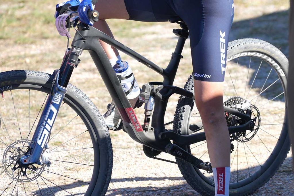 A la hora de preparar la Trek Top Fuel para competir al máximo nivel el equipo oficial solo ha hecho un cambio relevante a la configuración de serie (más allá de montar los componentes de XC más adecuados, como ruedas, neumáticos). Han dejado las suspensiones configuradas en 120 mm de recorrido, en ese caso, además, usando la tecnologías Flight Attendant, lo que supone olvidarse del mando remoto para gestionarlas.