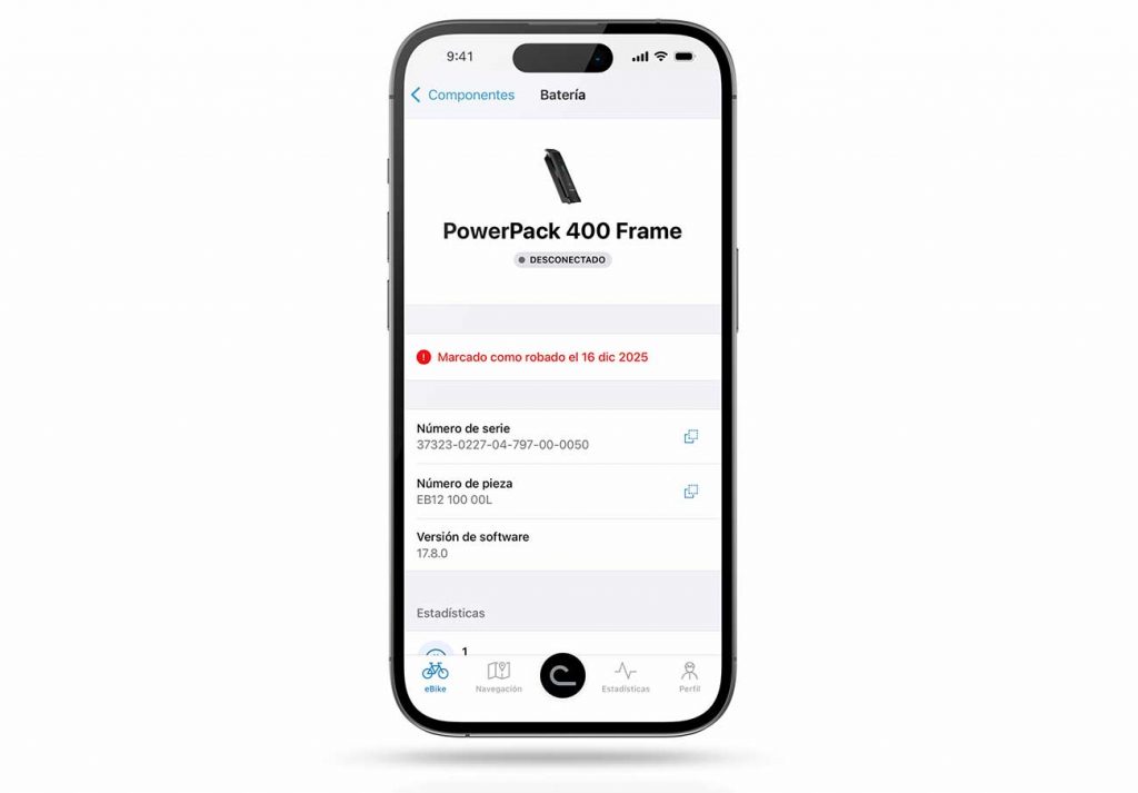 Cuando una eBike o una batería se marcan como robadas, esa información pasa a ser visible en todo el ecosistema digital de Bosch. Cualquier intento de conexión mediante la aplicación eBike Flow genera una advertencia inmediata, mostrando además los números de serie de los componentes afectados. Esto permite a compradores de segunda mano, distribuidores especializados y autoridades comprobar de forma sencilla el estado real de la bicicleta.