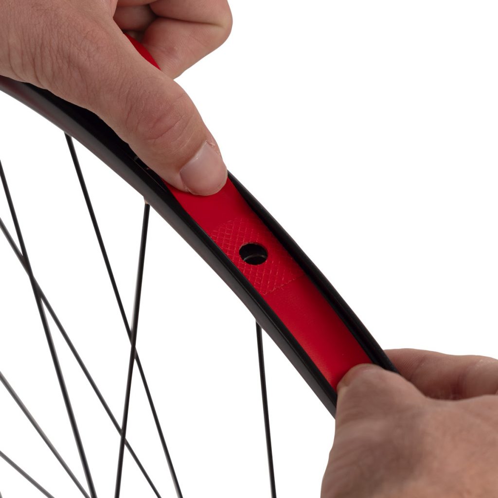 La cinta se ofrece en varios anchos, adaptándose a llantas estándar y cubriendo las principales medidas empleadas en carretera, gravel y MTB. Está disponible en color rojo y cuenta con múltiples referencias según el tamaño.