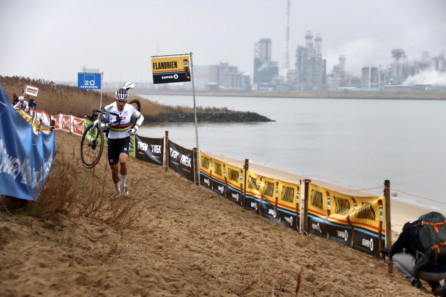 El campeón del mundo ha intentado llevar a cabo uno de sus shows habituales en ciclocross. Marcharse en solitario en la primera parte de la carrera y hacer toda la prueba a su aire. No ha podido, y ha tenido que esperar a la penúltima vuelta para abrir el hueco que ha acabado siendo definitivo. Por medio alguna caída en la arena y una muestra que su nivel es altísimo desde la primera carrera. Si este es el punto de partida sin ritmo de competición, sus rivales lo tienen muy complicado a medida que vaya sumando horas de carrera. Wout van Aert ya lleva varias carreras esta temporada sin haber logrado aún ningún triunfo.