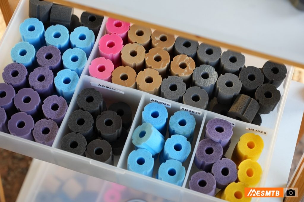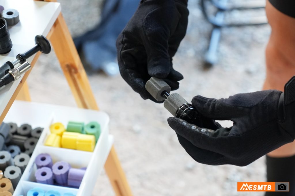 Absorbent es el producto que JRS Racing ha creado y que centró nuestro test. Es un sistema que sustituye los tokens rígidos de las cámaras de aire por una espuma elastómera de densidad variable. La estructura de estas piezas permite el paso del aire y proporciona un final de recorrido más progresivo y menos seco, sin alterar la sensación general de la suspensión.