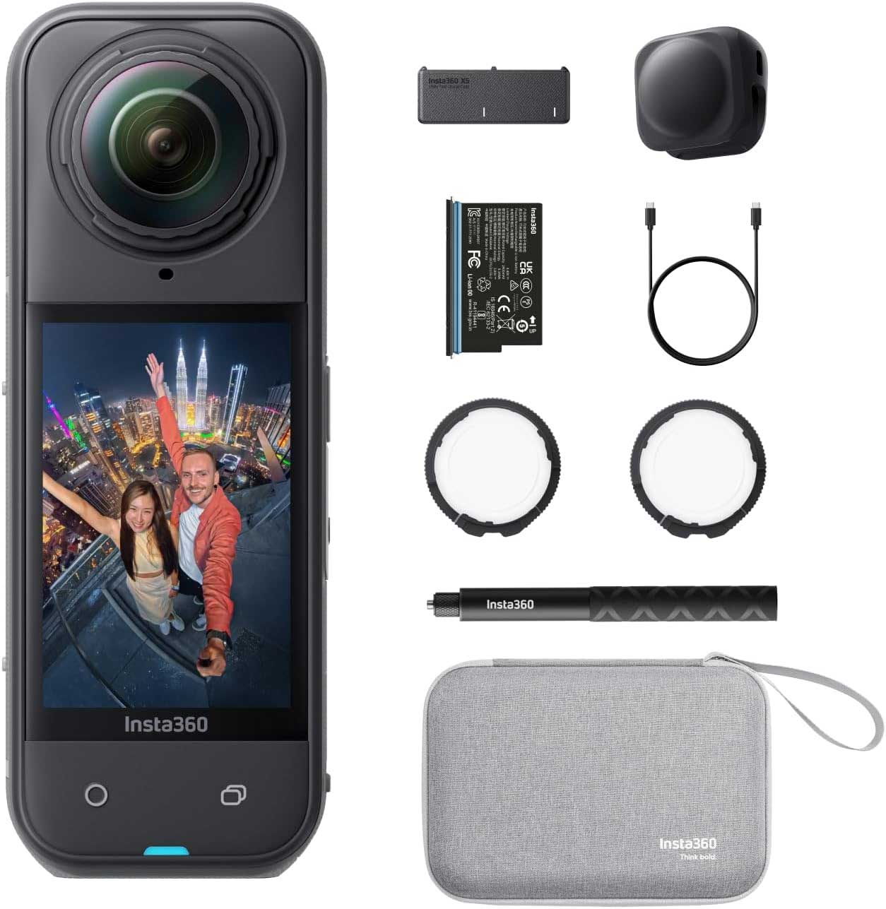 Insta360 aporta varias opciones para cubrir cualquier tipo de contenido. El Insta360 X5 Paquete Esencial, con descuento del 22 %, es una cámara 8K 360º impermeable, pensada para conseguir planos envolventes y aprovechar el efecto selfie stick invisible. Permite reencuadrar después en edición y jugar con ángulos imposibles sin preocuparte por el encuadre durante la ruta.