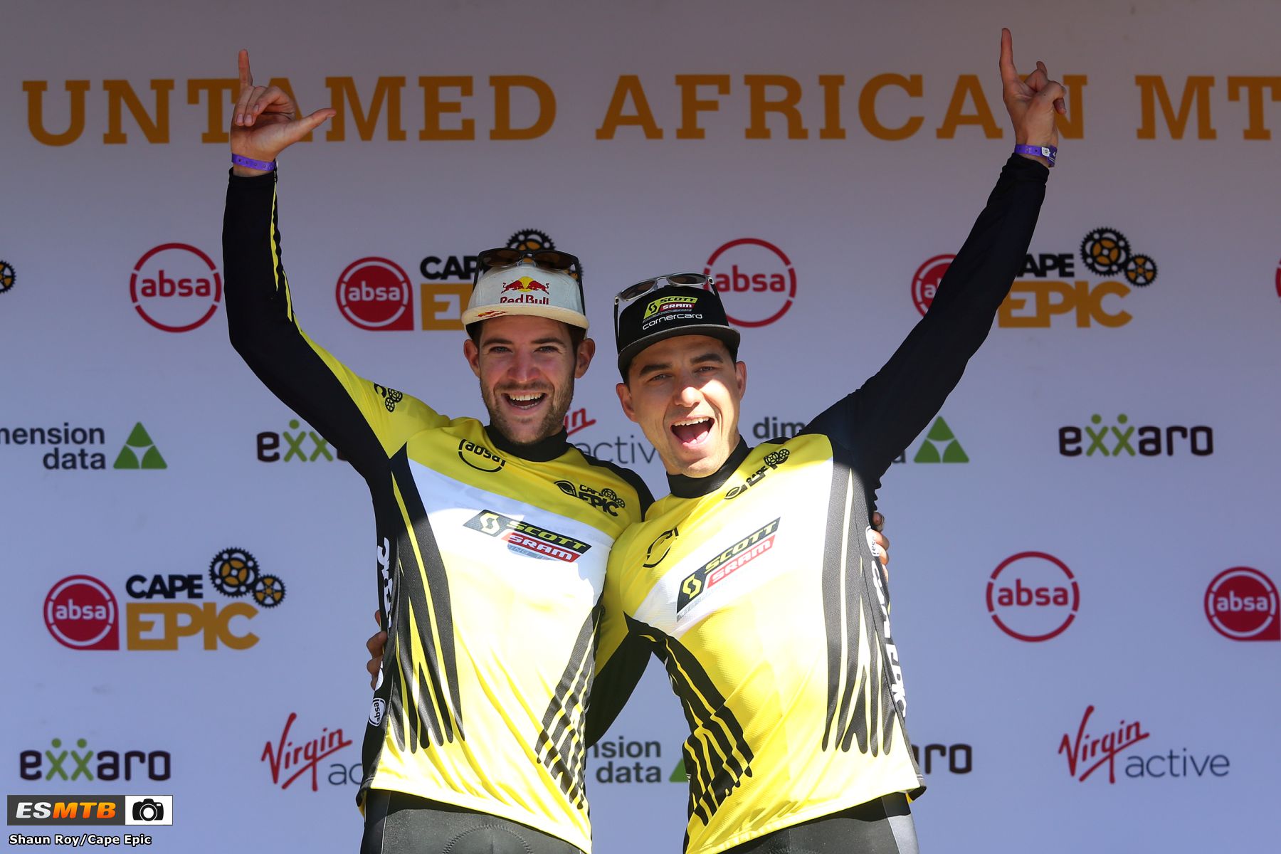La jornada de ayer terminaba con el liderato de Nino Schurter y Lars Forster con 8 minutos de diferencia respeto al segunod equipo, el Cannondale Factory Racing. Todo y que en la Absa Cape Epic, hasta que no pasas por meta en la Grand Finale no puedes cantar victoria. Cualquier avería mecánica o caída puede hacer que el trabajo de las etapas anteriores se esfume.