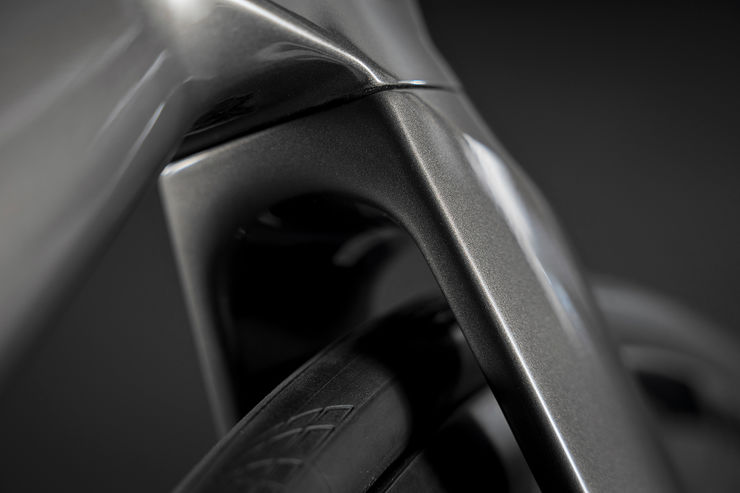 La nueva horquilla presenta patas más profundas y estilizadas que mejoran la aerodinámica en la zona crítica de interacción entre rueda y cuadro.