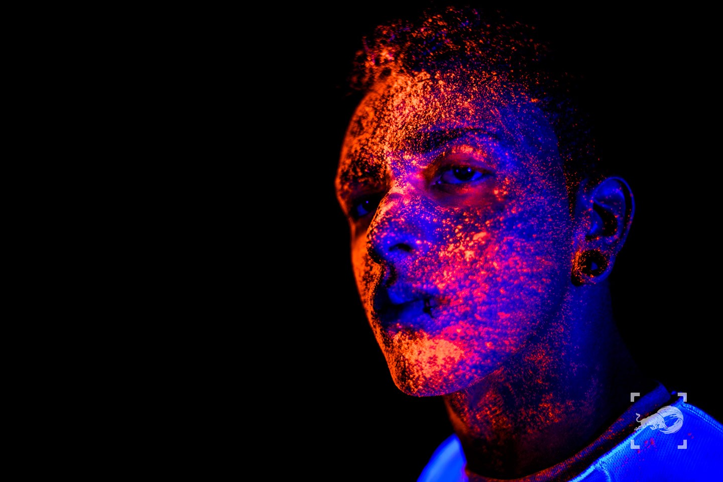 A base de luz ultravioleta ha creado Black Light (como también se conoce ese tipo de luz), el nombre de un proyecto en el que ha trabajado con esta difícil fuente de iluminación. Es un tipo de luz muy poco intensa, que solo permite fotografiar ciertos tipos de colores y materiales, con lo que trabajar con ella es muy complejo. Red Bull confió en su idea.