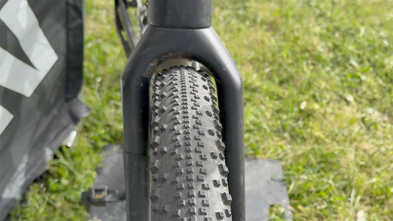 El problema es que esta práctica ignora los límites impuestos por los propios fabricantes de bicicletas. La mayoría de cuadros de gravel del mercado no están diseñados para aceptar neumáticos de más de 45 o 47 mm, y esos límites no son arbitrarios: están pensados para garantizar un mínimo de seguridad y durabilidad. Factores como el paso de rueda, el posible contacto con vainas o punteras, el barro acumulado en competición o incluso la desviación lateral de la rueda en marcha son tenidos en cuenta por los ingenieros a la hora de fijar esas cifras.