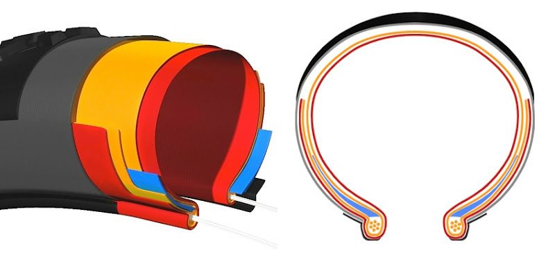 Cada lado del neumático tendrá unos cuadros de información donde se enseñará el compuesto empleado, la línea de producción a la que pertenece y de que variante se trata (tubeless o Snakeskin).