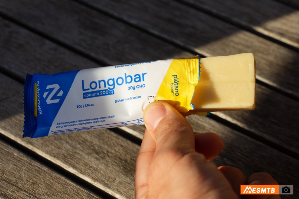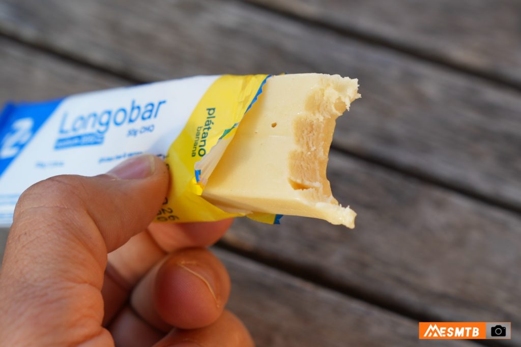 El rasgo más destacable de la Longobar es su textura. Es blanda, jugosa y fácil de masticar, incluso con respiración agitada o en situaciones de alta intensidad. Esto marca una diferencia real frente a muchas barritas tradicionales, que requieren aflojar el ritmo o dedicar más tiempo del deseado para poder tragarlas con comodidad. En la práctica, la Longobar se puede consumir rápido, casi sin interrumpir el ritmo, algo especialmente valioso en MTB y gravel, donde no suele ser tan cómodo comer en marcha como en carretera.