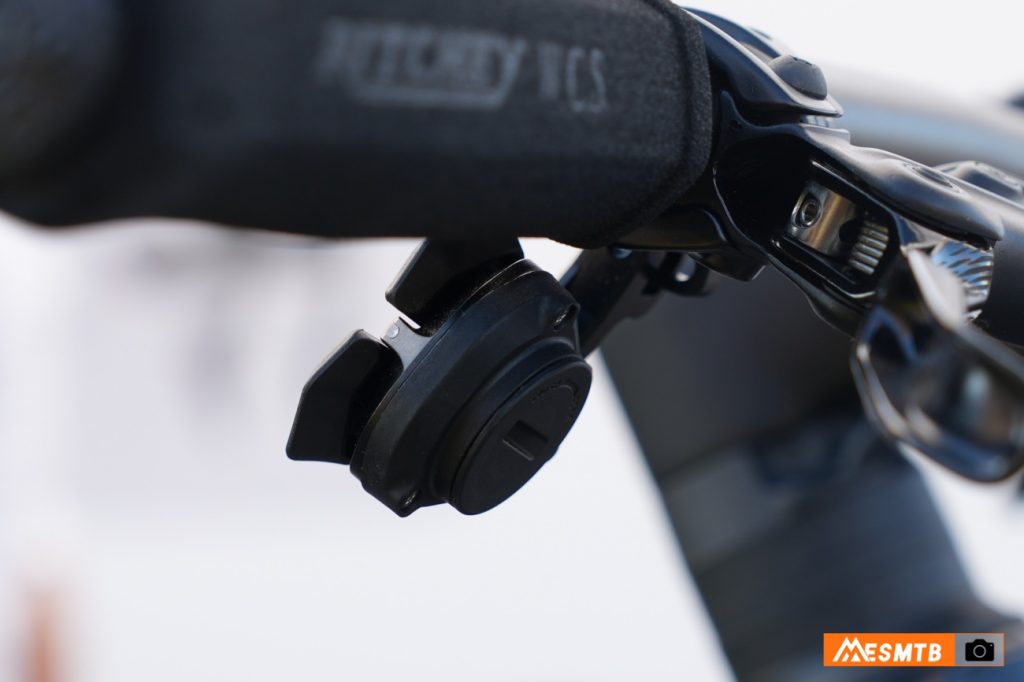 - En MTB, un pulsador de manillar plano alimentado por pila CR2032.