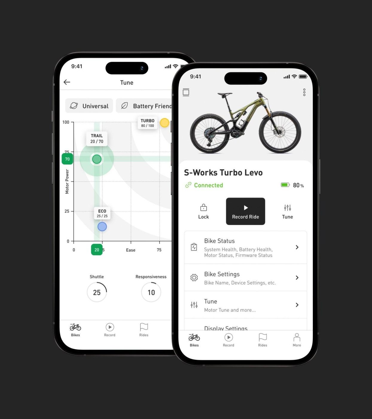 La nueva app de Specialized es ahora mucho más que un lugar donde gestionar los aspectos básicos del funcionamiento de tu e-bike Turbo. Con su total integración con sus bicicletas eléctricas, ha aumentado las posibilidades de personalización de los diferentes modos de funcionamiento haciendo que cada rider la pueda configurar a su gusto. Además, permite el acceso a estadísticas que te ayudarán a entender cómo sacar más partido al motor y la batería.