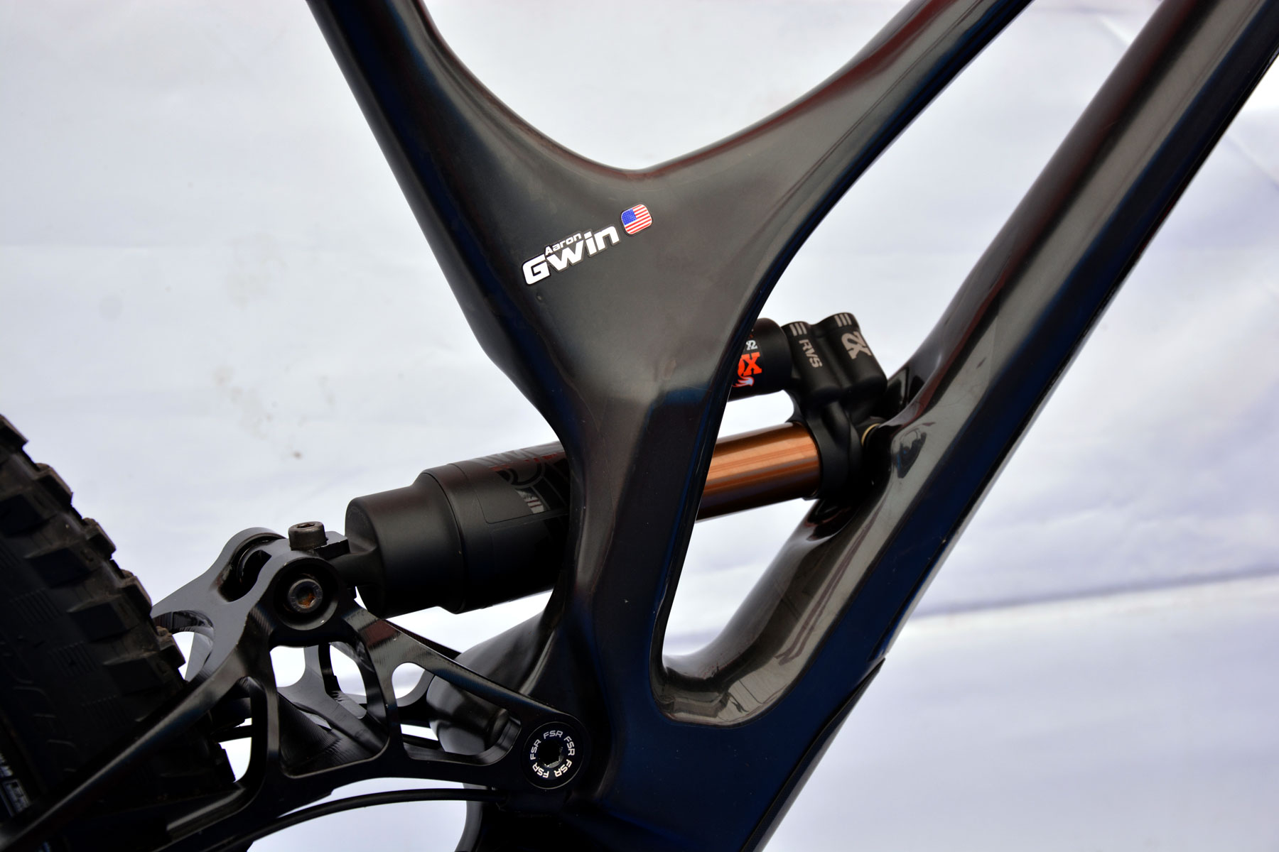 Esta es la máquina que Gwin pilotó hasta la victoria en el exigente trazado de Val di Sole. Al contrario que la Demo 8 de Troy Brosnan, que va equipada con suspensiones RockShox, el estadounidense monta Fox. Atrás con un amortiguador de aire, el nuevo Fox Float X2. Atrás quedaron los años en los que el aire era sólo para el XC. Delante equipa una Fox Float 40.