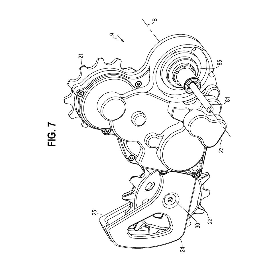 De entrada todo el mecanismo de motor y batería cambia de lugar para ubicarse en la zona de la caja de las roldanas. Eso permite crear un cambio mucho más compacto en dimensiones. Y ya no hay necesidad de que la batería sea extraíble como pasa en los cambios SRAM AXS actuales. Eso sí, la «nueva» caja de las roldanas pasaría a ser un componente muy más caro que en el diseño actual, con todo lo que podría suponer en caso de golpe o caída.
