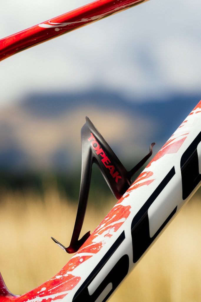 El diseño de esta Spark RC va mucho más allá de la estética. Inspirado en los colores de Suiza y en las rayas arcoíris que Schurter ha lucido más que nadie en la historia del MTB, el cuadro luce salpicaduras de pintura que simbolizan velocidad y victorias. El rojo parece desvanecerse para mostrar lo que hay debajo, mientras que la inscripción Greatest Of All Time en el tubo de sillín recuerda a todos que solo hay un verdadero GOAT.