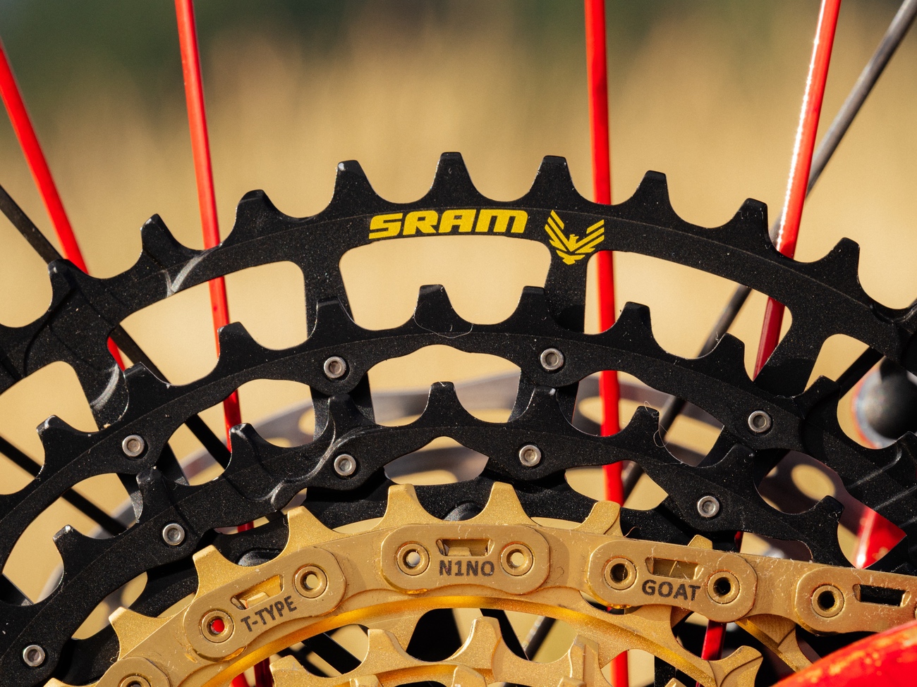 • Transmisión: SRAM BlackBox Eagle Transmission con potenciómetro XX SL GOAT Eagle, plato de 38 y cassette 10-52
