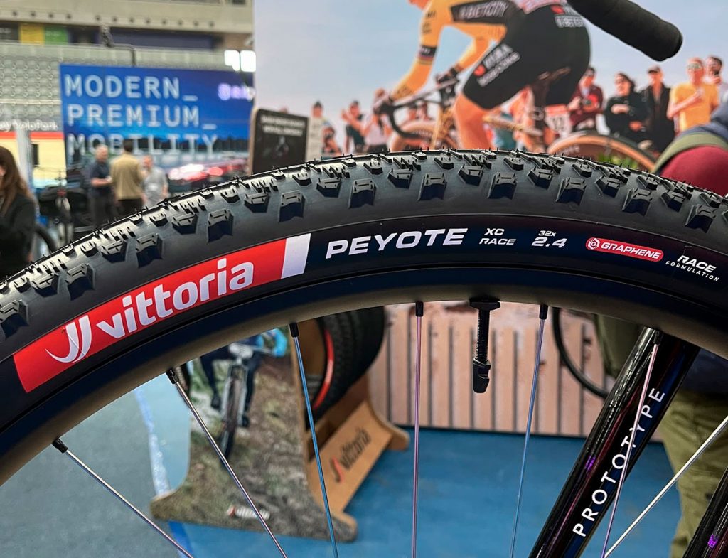 Vittoria ya ha mostrado públicamente su primera cubierta de 32″ y lo ha hecho con un mensaje bastante claro sobre hacia dónde apunta este nuevo estándar. El escenario elegido fue la feria iceBike 2026, celebrada en Manchester y Londres, donde la marca italiana exhibió la nueva Peyote XC Race 32” como adelanto del trabajo que está desarrollando en torno a este nuevo tamaño de rueda.