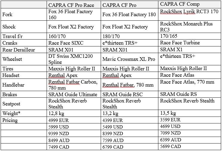 • En el modelo Capra CF Comp se deja de usar la RockShox Pike en beneficio de la RockShox Lyrik, con lo que pasa a tener 170mm de recorrido.